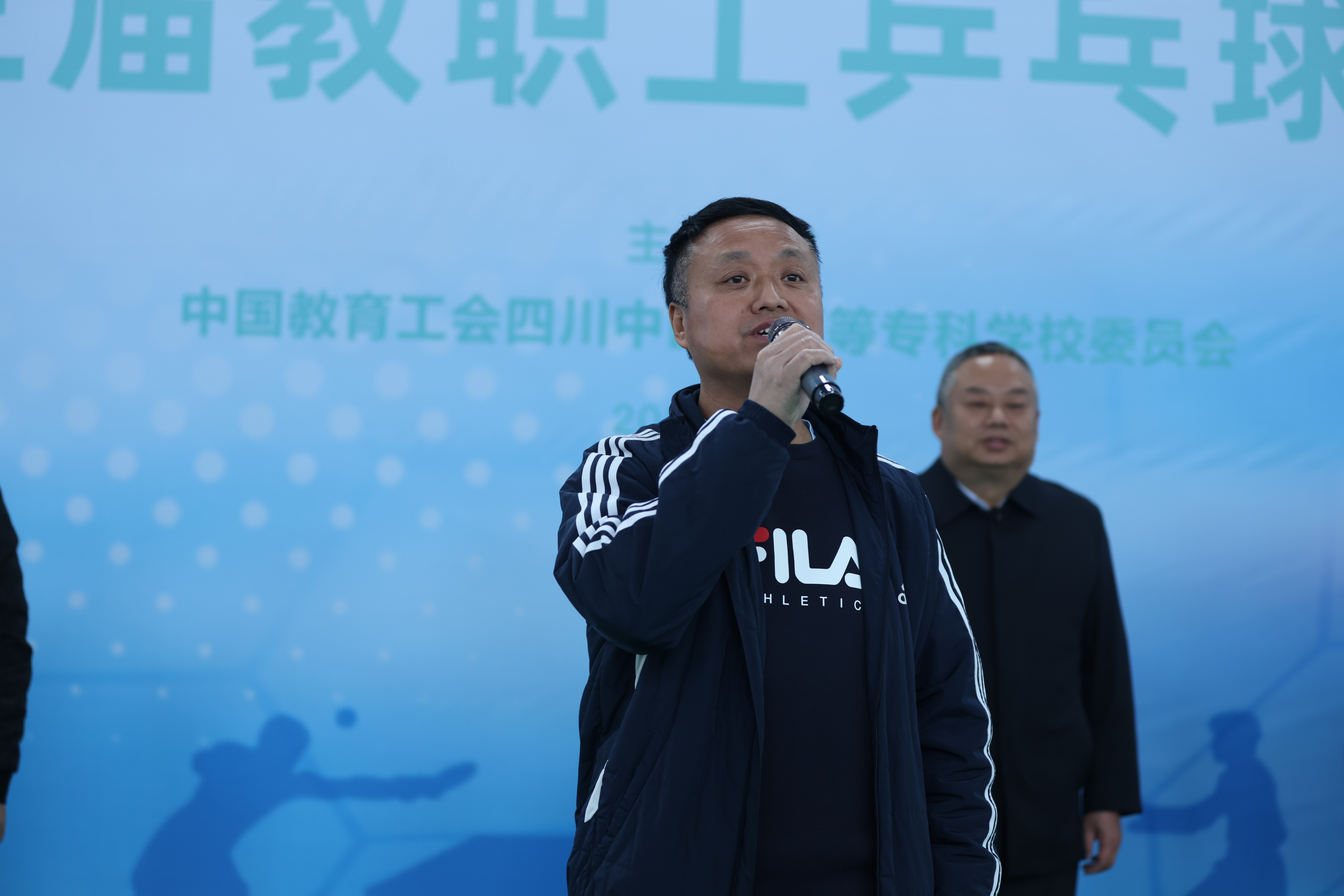 商碧辉致开幕词。他代表学校工会向全体参赛教职工、裁判员和工作人员表示问候,并强调了开展全民健身活动对助推学校高质量发展的重要意义。