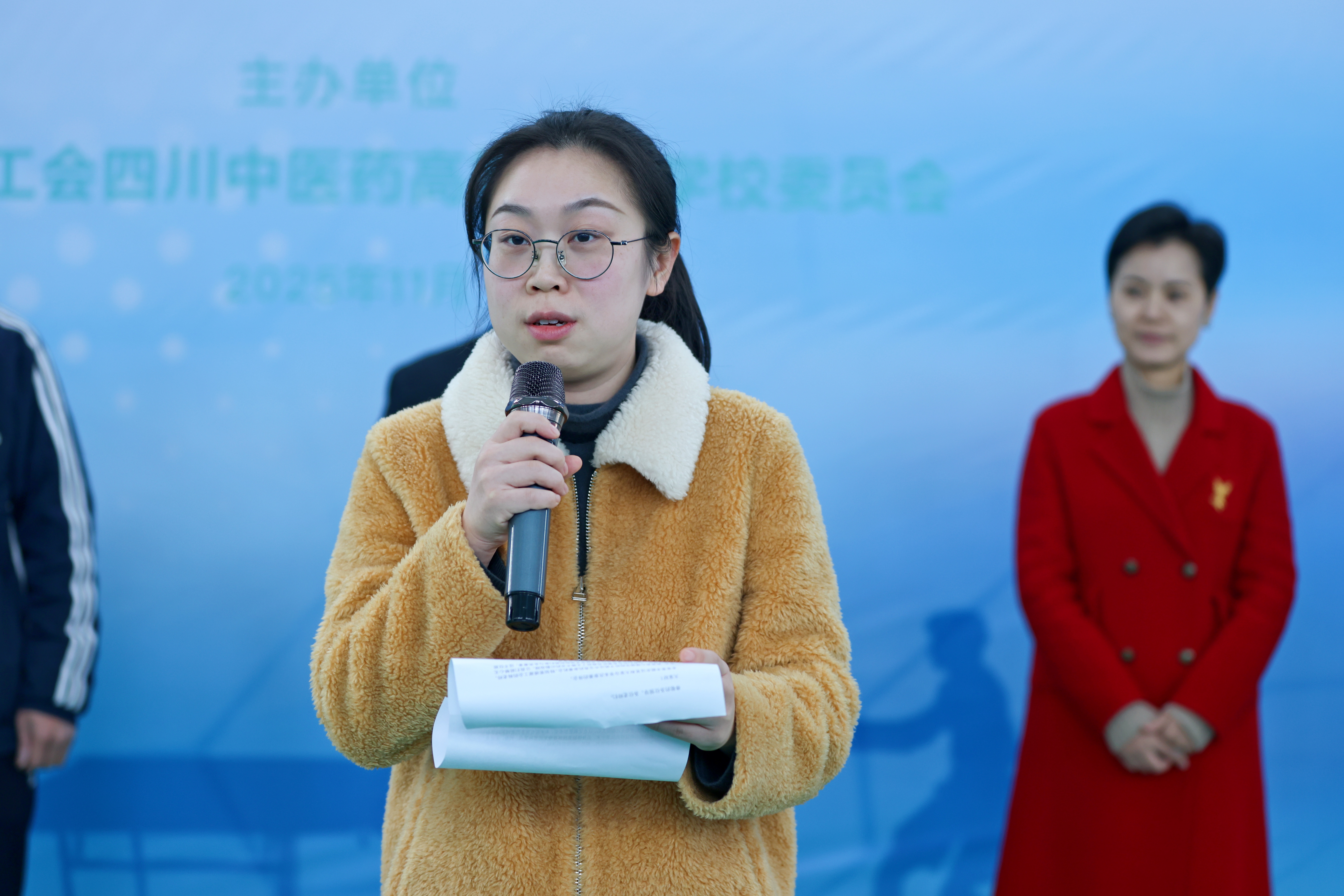 刚刚在四川省中医药发展促进会主办的2025年“好人堂杯”乒乓球比赛中荣获女子单打冠军的教师黄琬茹分享参赛经历,号召广大教职工积极参与体育锻炼,享受运动带来的健康与活力。