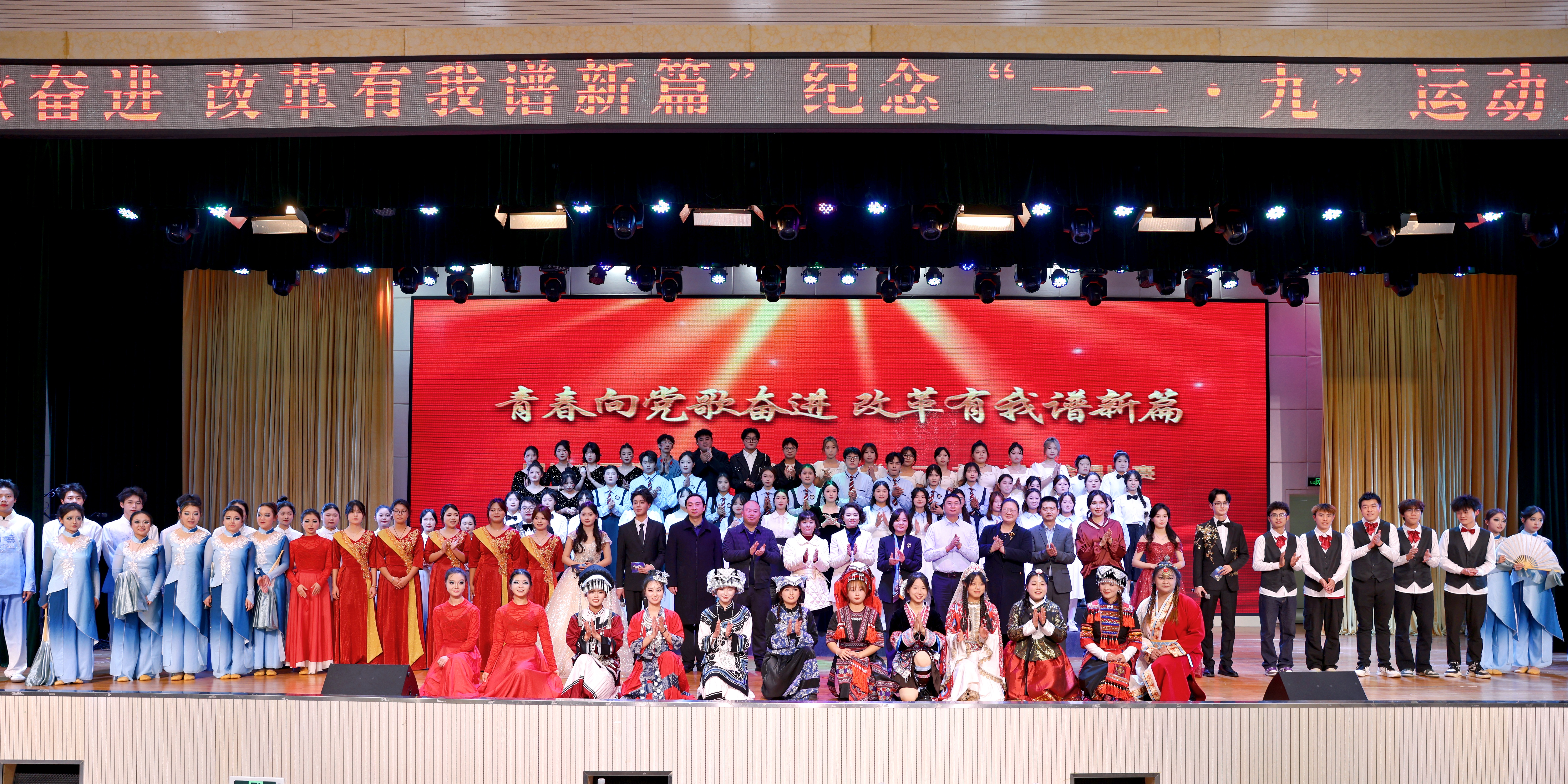 12月4日晚,我校举办了“青春向党歌奋进,改革有我谱新篇——纪念‘一二·九’学生爱国运动90周年合唱比赛”,以歌声回望峥嵘岁月,以旋律传承爱国初心。学校党委书记李炜弘,相关部门、学院负责人及600余名师生代表参加。
