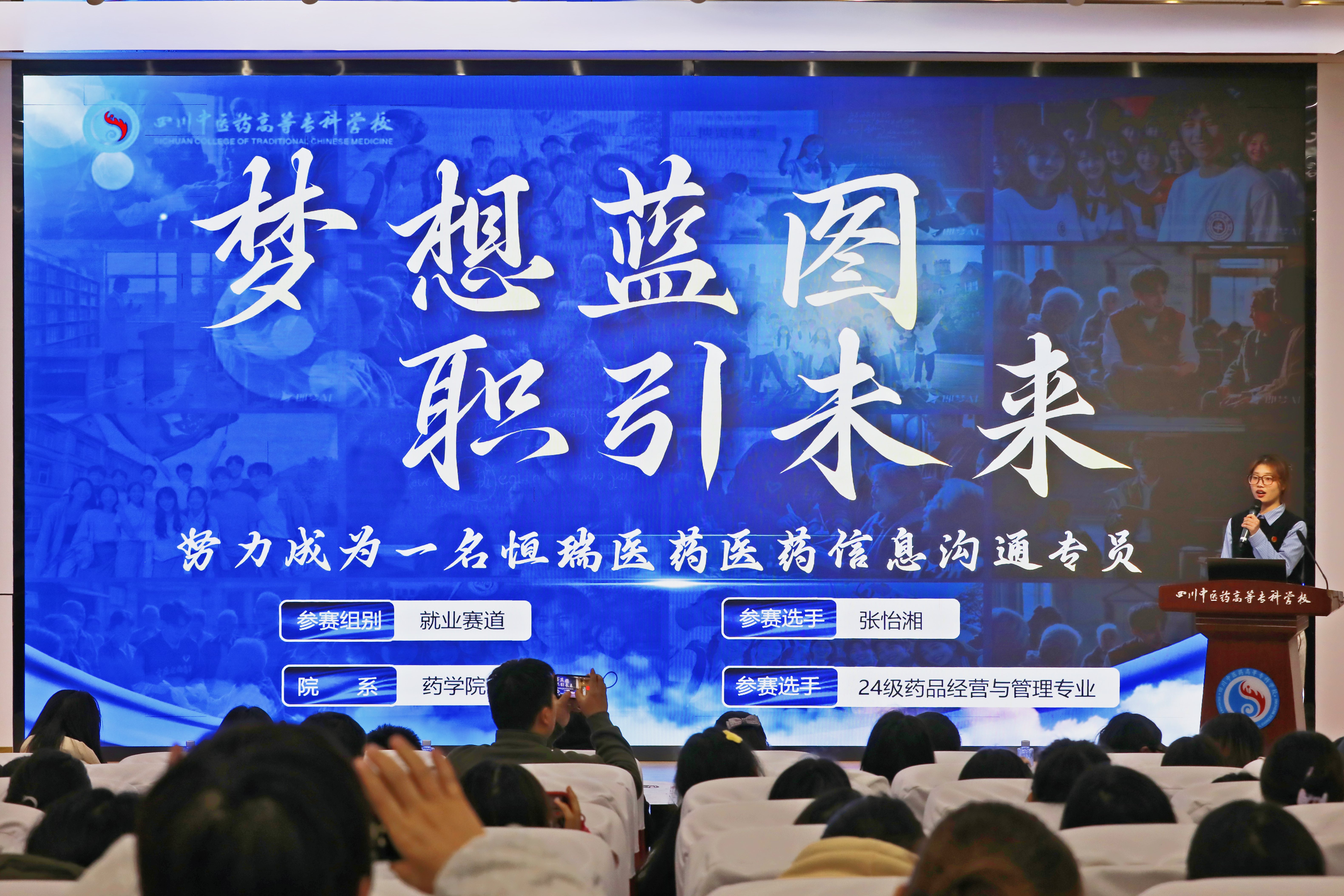 决赛现场,选手们凭借精心制作的PPT,生动讲述职业缘起与成长路径:有学子立志成为基层中医医师,计划通过“基层轮岗积累-专科技能精进-乡土医疗帮扶”的阶梯式发展,让传统医术惠及乡邻;有护理专业学子聚焦老年康养领域,构建“技能认证-智慧护理实践-康养机构管理”的职业蓝图;还有药学专业学子瞄准中药创新方向,规划从实验室研发到产业转化的全链条发展路径。评委团围绕参赛选手职业目标适配性、行动方案落地性、行业趋势把握度等维度精准点评,既肯定亮点又直指不足,为学子们提供了专业指导与职场建议。