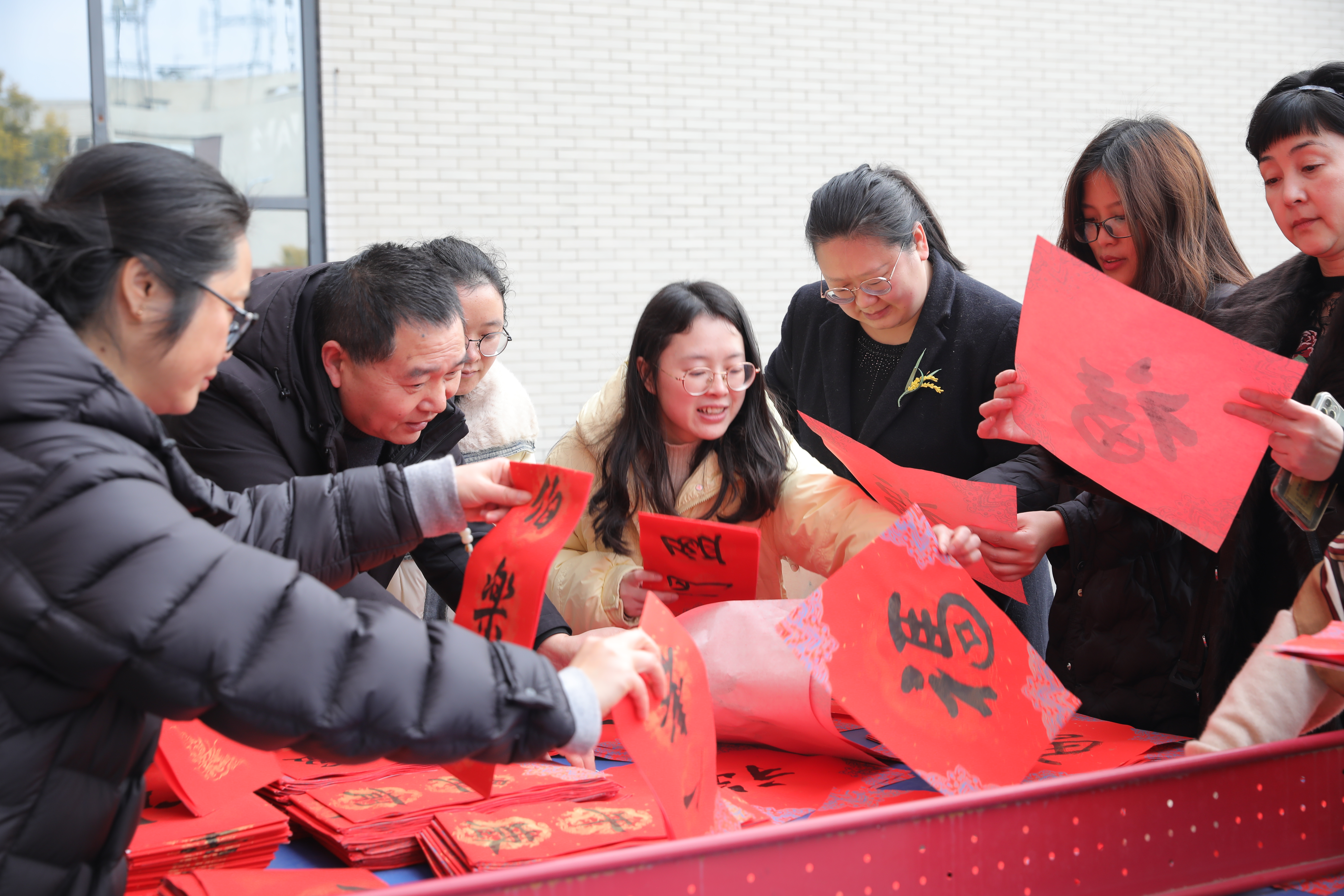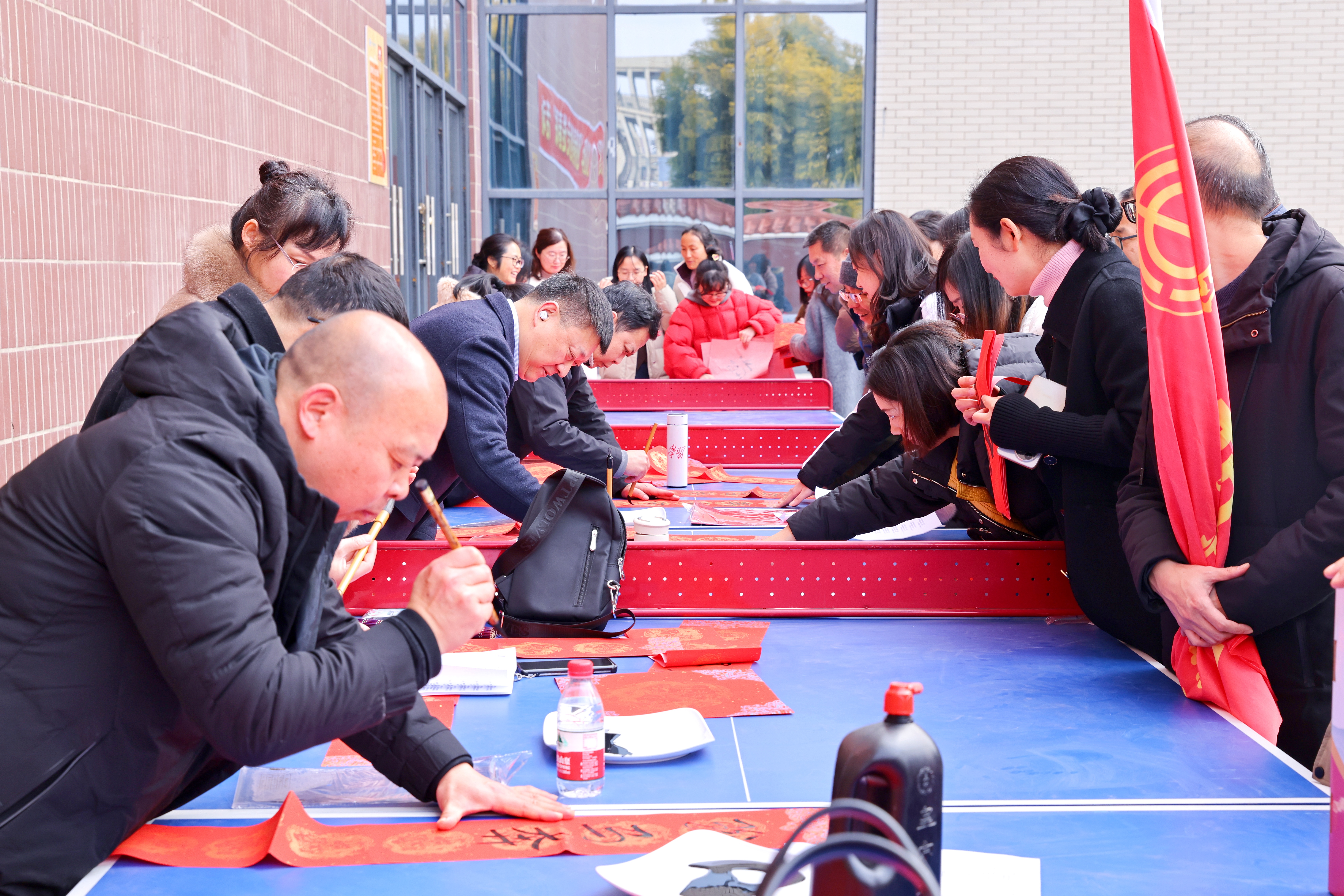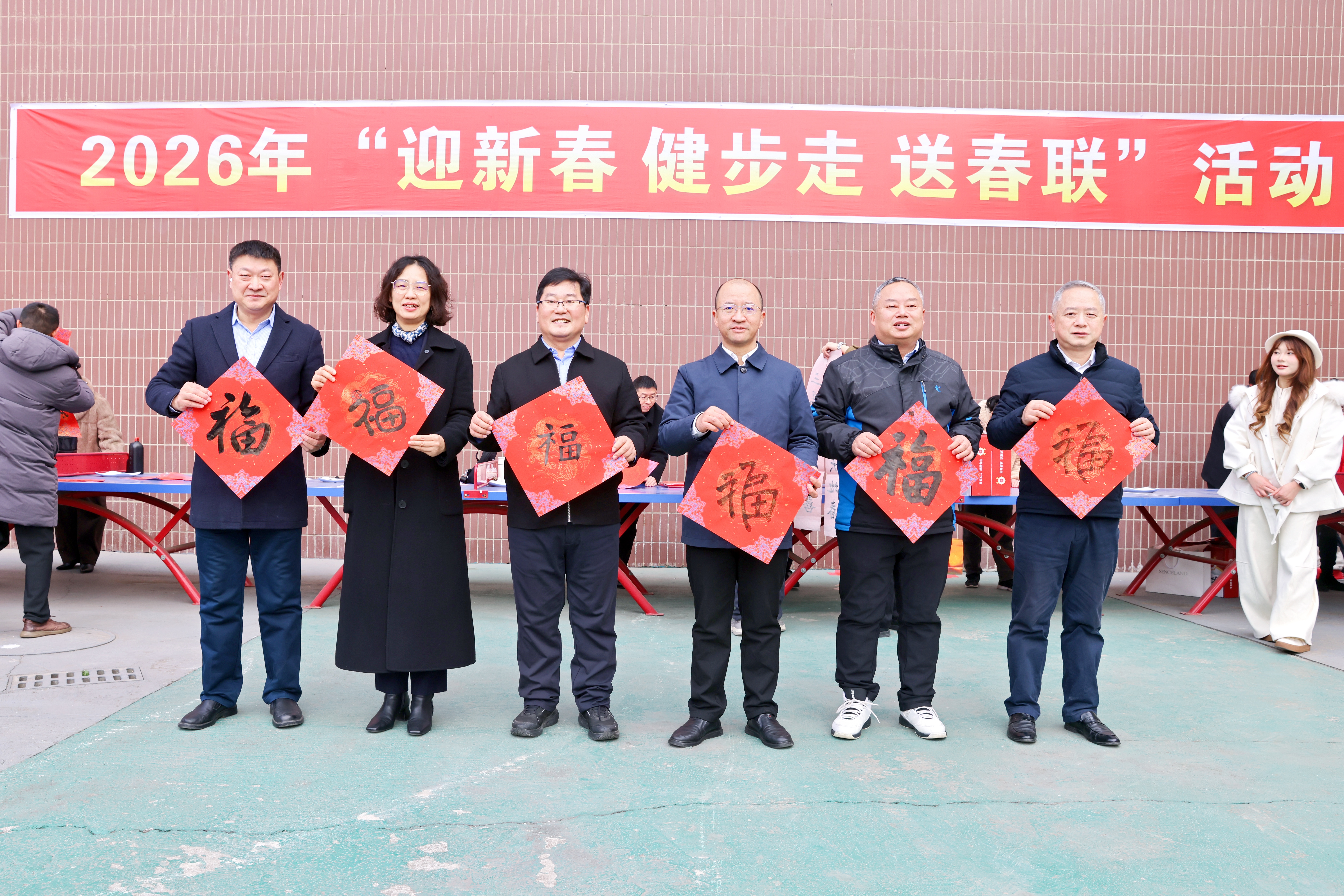 上午11时许,队伍陆续抵达终点——南园东门教职工活动之家。各分工会有序领取健步走纪念品,并积极参与岐黄书院书法工作室组织的写春联、送祝福活动。活动现场墨香四溢,春意融融,为即将到来的春节增添了浓厚的文化气息。