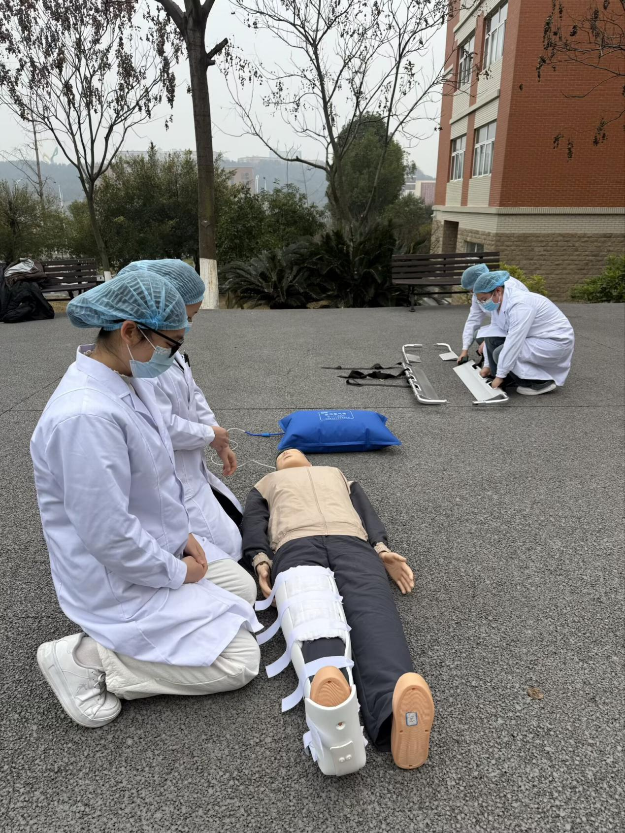 项目创新融入敏鹊-AI辅助诊疗系统,将创伤急救与健康管理有机结合,既体现科技赋能医疗的前沿理念,又彰显服务基层的职教特色。自去年12月启动选拔以来,临床医学院成立专项工作组,指导教师团队放弃休息时间,针对心肺复苏、动静脉穿刺等核心技能开展专项训练;同学们每天坚持十余小时高强度练习,在“救-运-治-管”四个环节反复打磨,每一个动作都力求精准规范。