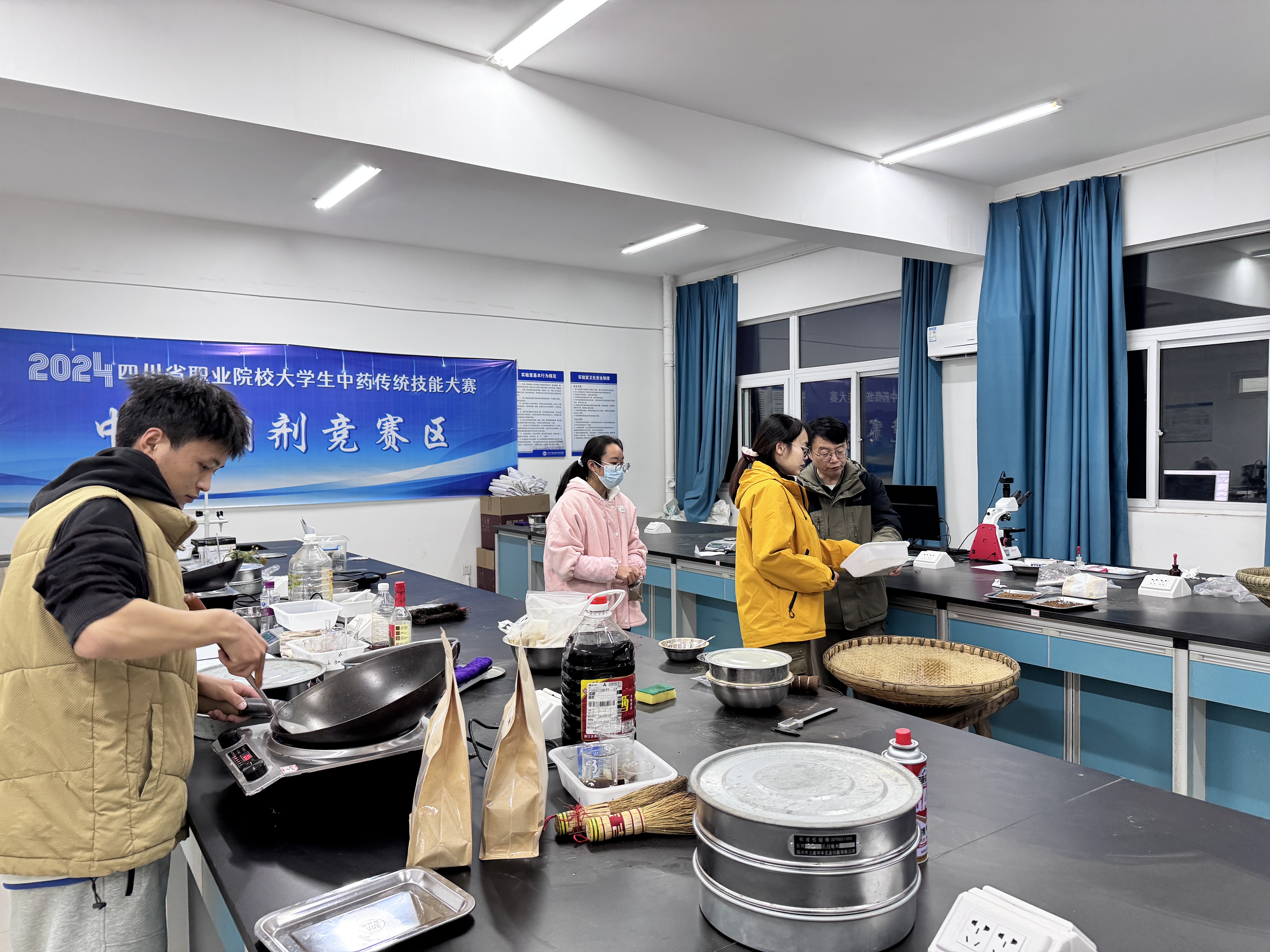 项目聚焦美洲大蠊生产及临床应用痛点,以“传承与创新并重”为核心,构建全链条解决方案。团队基于“丸剂缓效”理念,创新采用秫米起模工艺开发水泛丸剂型,实现传统虫药现代化转化,并联合开发中药智能评价系统,为传统中药制剂研发提供了创新思路。备赛期间,在学校的统筹保障下,团队历经近三个月集中集训,通过分阶段制定计划、层层考核淘汰,并特邀四川省中医药技能大师工作室带头人任劲松、医疗健康产业处处长夏清、教务处副处长李科伟、网络技术与教育数字化中心夏金红老师提供跨学科专业指导,反复打磨项目技术与展示。比赛现场,团队凭借扎实的专业功底与默契配合,完整呈现项目全流程,彰显了我校跨学科协同育人的扎实成效。