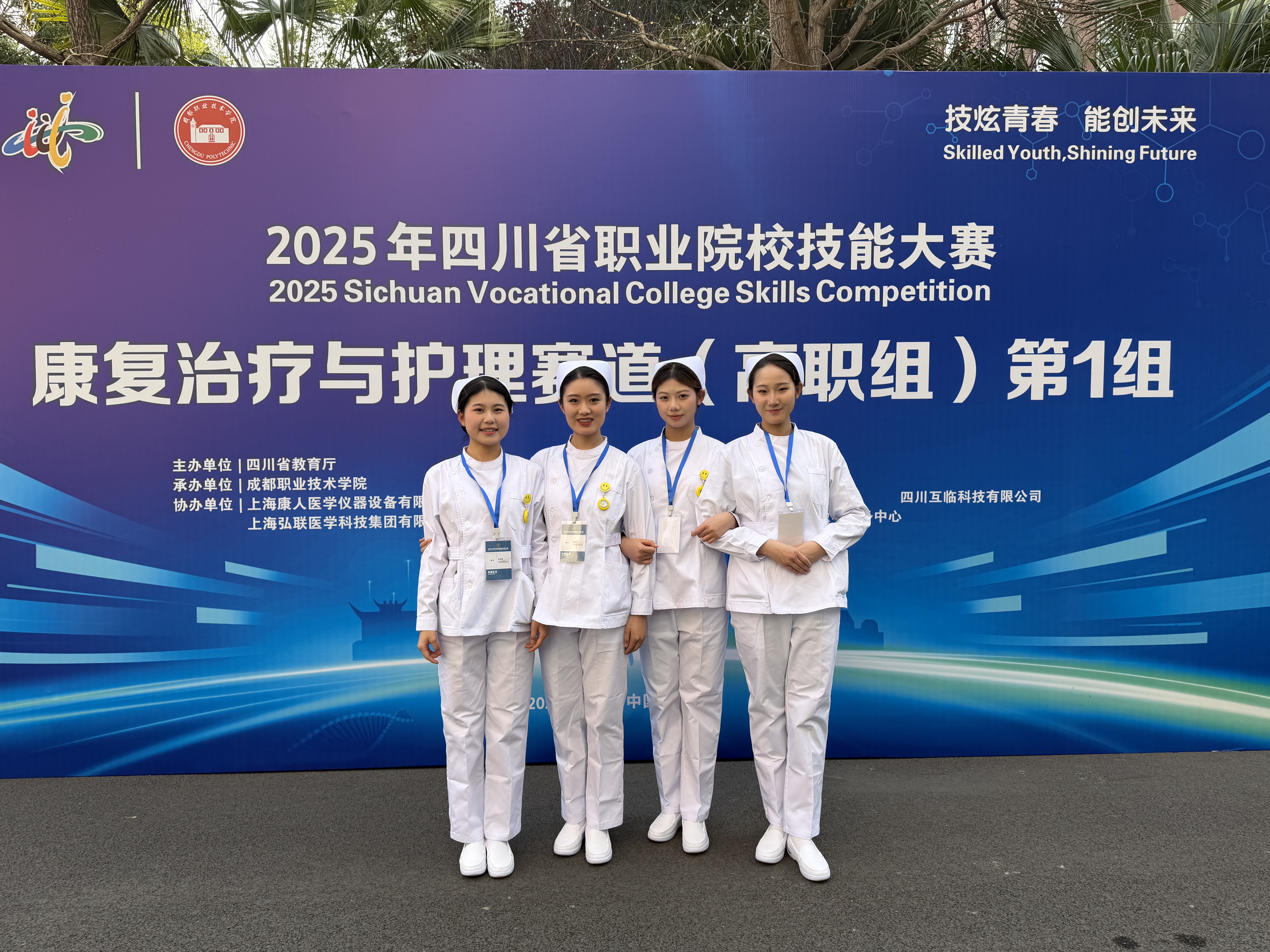 项目聚焦脑卒中患者全周期康复与智能照护的行业痛点,联合校企共同研发,将智能监测技术与个性化康养方案深度融合,为脑卒中患者的预警干预、居家康复、远程照护提供了创新解决方案。备赛期间,队员们利用课余时间反复打磨操作流程,模拟真实临床场景开展演练,从病情评估、康复训练到健康宣教,每一个环节都力求精准规范。比赛现场,团队成员沉着冷静、配合默契,清晰展示了项目在脑卒中全流程管理中的创新应用,以扎实的专业功底和出色的临场表现,充分展现了我校护理学子精益求精的职业素养与团结协作的精神风貌。