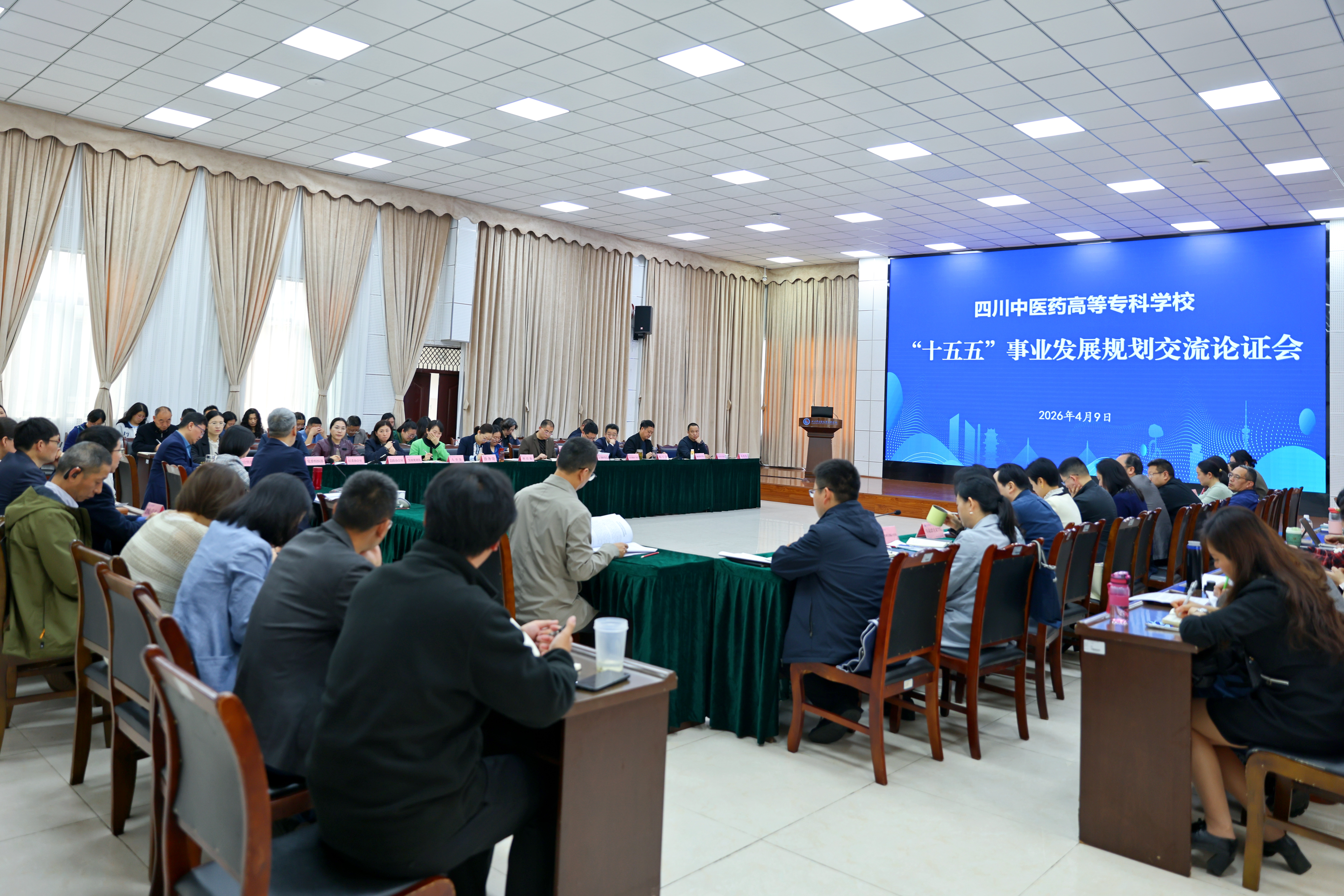 4月9日上午,我校“十五五”事业发展规划交流论证会在南园综合楼学术报告厅召开。会议特邀国务院政府特殊津贴专家、成都中医药大学原党委副书记、校长余曙光教授莅临指导,为学校转型发展与长远建设把脉定向、传经送宝。学校党委书记李炜弘主持会议,全体校领导、中层管理干部、教师及各方代表与会。