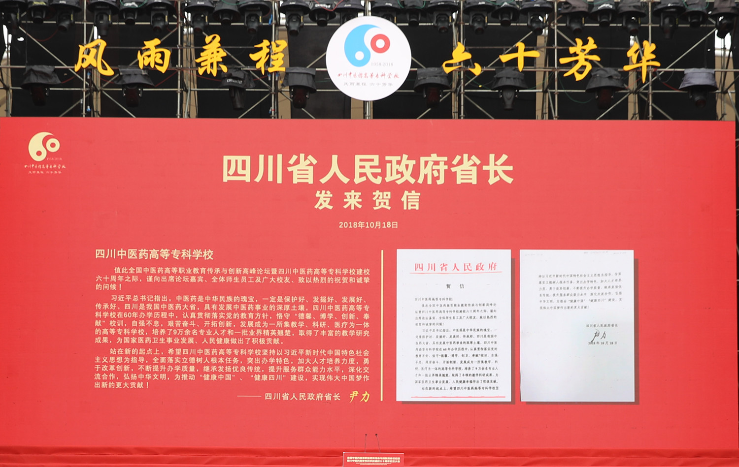 大会首先宣读了四川省委副书记、省长尹力的贺信。
