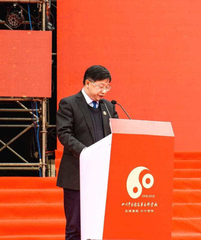 校党委书记秦晓明在致辞中表示,六十年来全校师生不忘初心,在各级党委、政府、主管部门的关心重视和社会各界的支持帮助下,艰苦创业、负重前行,确立了争创“西部一流、国内知名”的奋斗目标和“跳出校园抓教育,围绕民生办教育”的发展路径;本次举办全国中医药高等职业教育传承与创新高峰论坛暨纪念四川中医药高等专科学校建校60周年大会,是要在我国中医药高等职业教育承上启下、继往开来的新阶段,虚心学习各兄弟院校的先进经验和科学方法,更加遵从教育规律;更加注重依法治校;更加注重真抓实干;用更加富有成效的努力来推动学校的内涵建设与科学发展,为我国医学高等职业教育的发展与建设、作出中国(绵阳)科技城的应有贡献而团结奋斗。