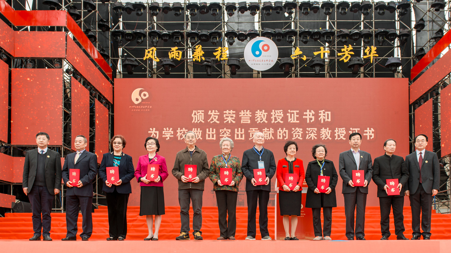 大会收到了来自全国各地企、事业单位、各类学会以及我校校友从美国、英国、葡萄牙等世界各地发来的贺信贺电;大会为刘敏如、廖品正、祝之友、成翼娟、马跃荣等14人颁发了荣誉教授证书;为该校陈邦进、邓兴吉、黄纯琪等8名为学校做出突出贡献的资深教授颁发了证书。全国著名小儿推拿专家、我校杰出校友廖品东教授代表校友发出倡议,他倡议:学校正处于发展的关键时期,作为学校的一员,一是要继续为学术作贡献;二是继续关心学校建设;三是不断提升社会影响力,像一颗火种,通过燃烧表达对母校最炽热的爱。