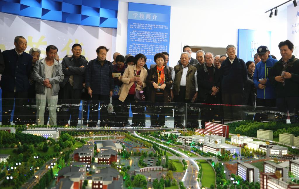 离退休教职工们还集体参观了学校南、北校区和校史馆,对校园日新月异的变化交口称赞,纷纷拍照留影;老同志们认真观看校史馆里的一张张图片、一段段文字、一件件实物,回忆起往事激动之情溢于言表。80岁高龄的刘建君老师代表离退休职工献上了特意为校庆60周年创作的诗歌《川医专巨变歌——恭贺四川中医药高等专科学校六十华诞》,表达了全体离退休职工对学校的深深眷恋和爱校之情。