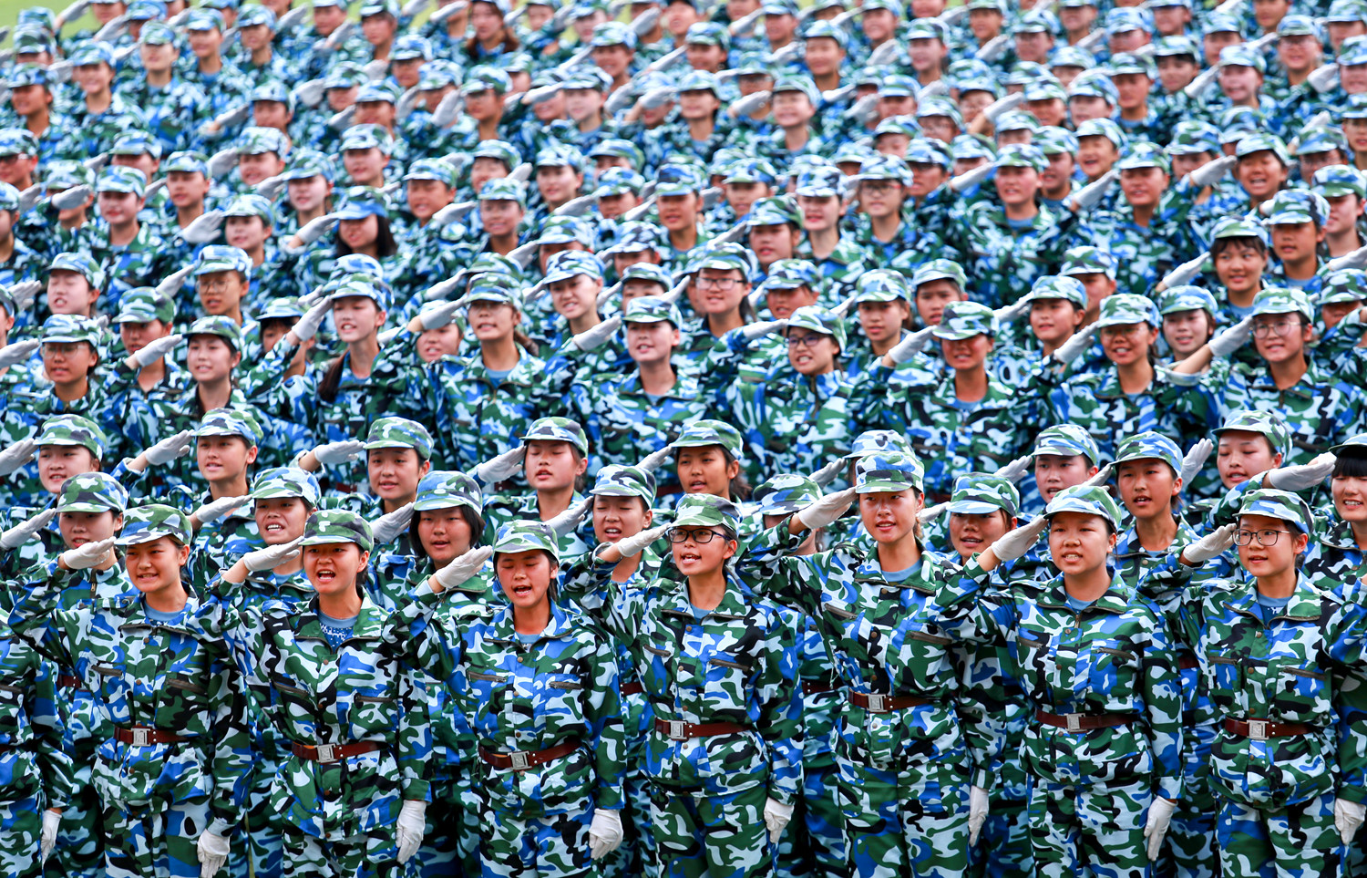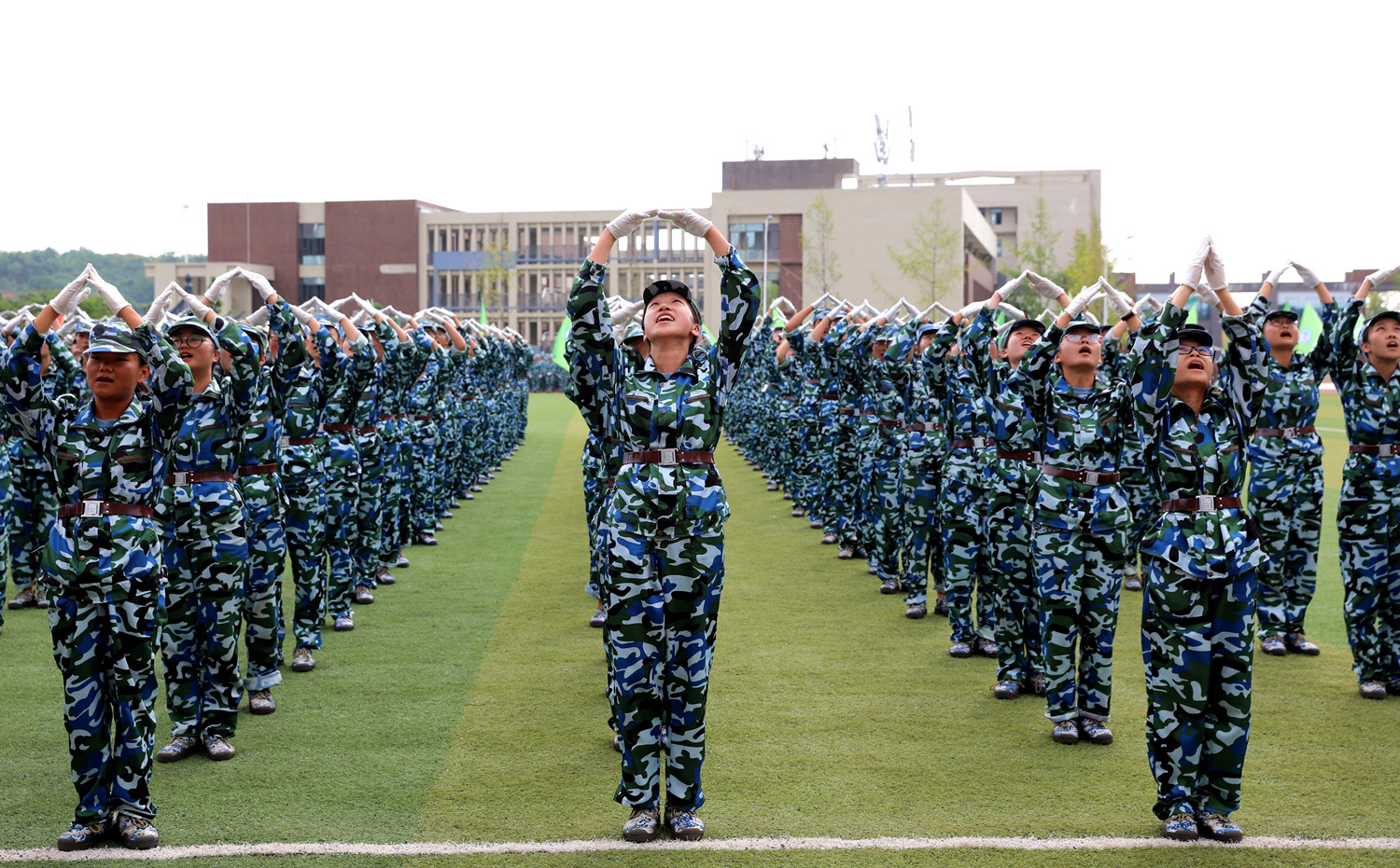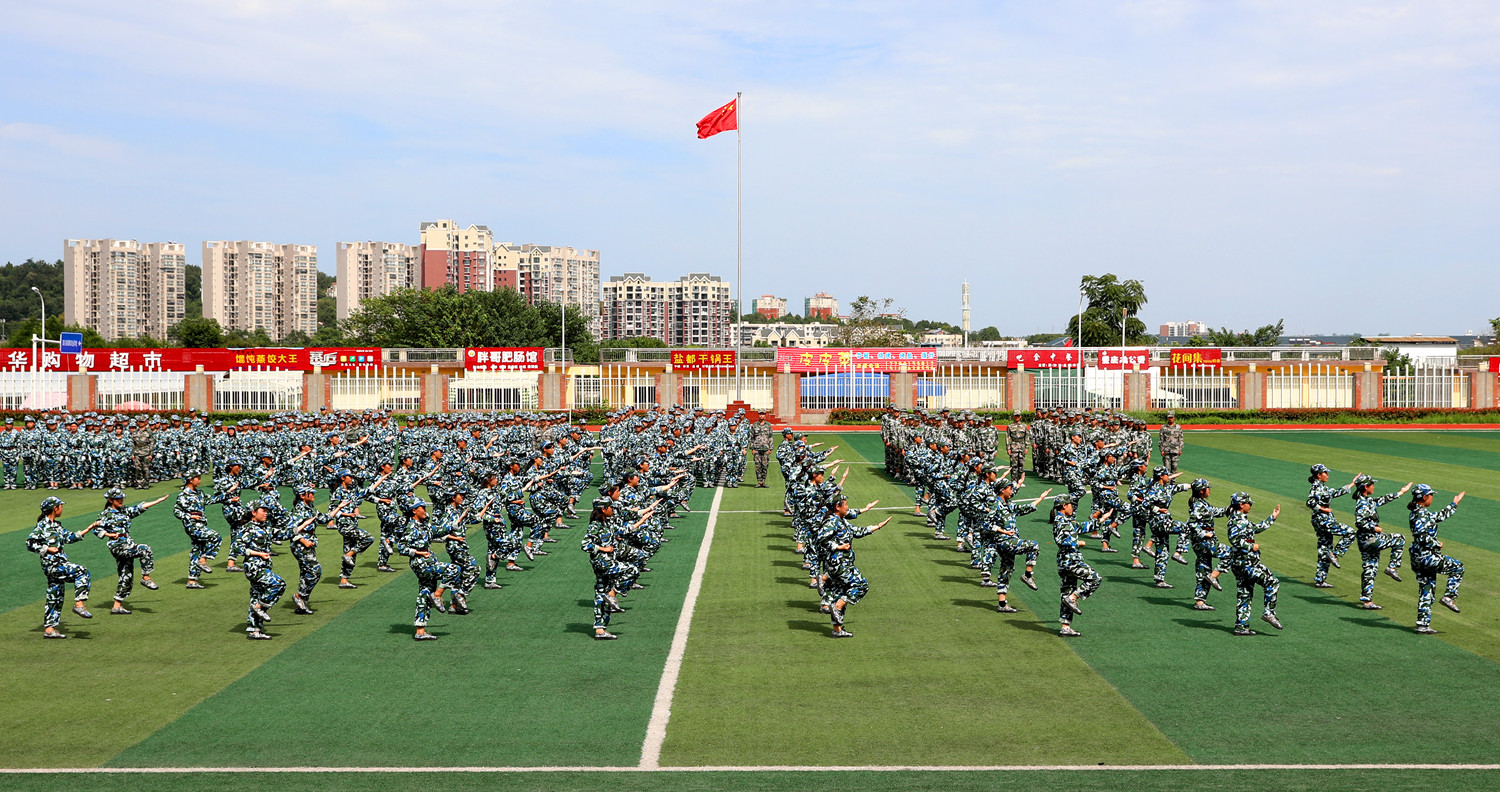 分列式结束后,同学们进行了擒敌拳、匕首操和花式队列等军事课目表演,一个个看似简单却准确有力的军事动作,凝聚了教官和同学们顽强拼搏的辛勤汗水和成果。