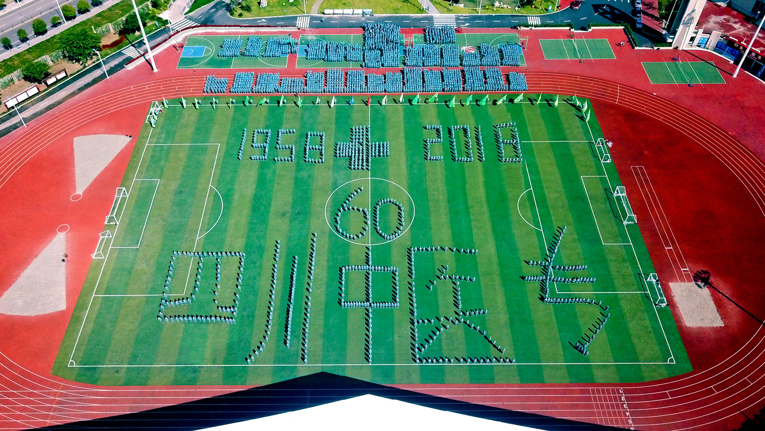 今年适逢我校建校六十周年,当现场同学们组成有学校特色和医学特色的字样,为学校60华诞和国庆节送上祝福时,现场爆发出热烈的掌声。