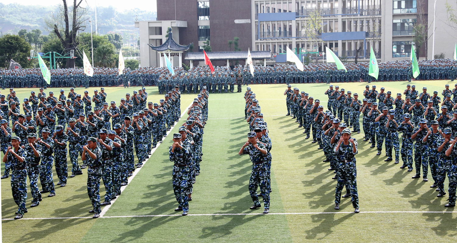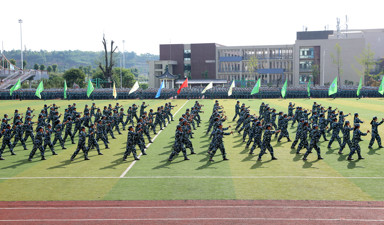 当天下午,我校与绵阳农业学校举行了联合军训会操表演,我校2018级五年高职的300名学生再展英姿。