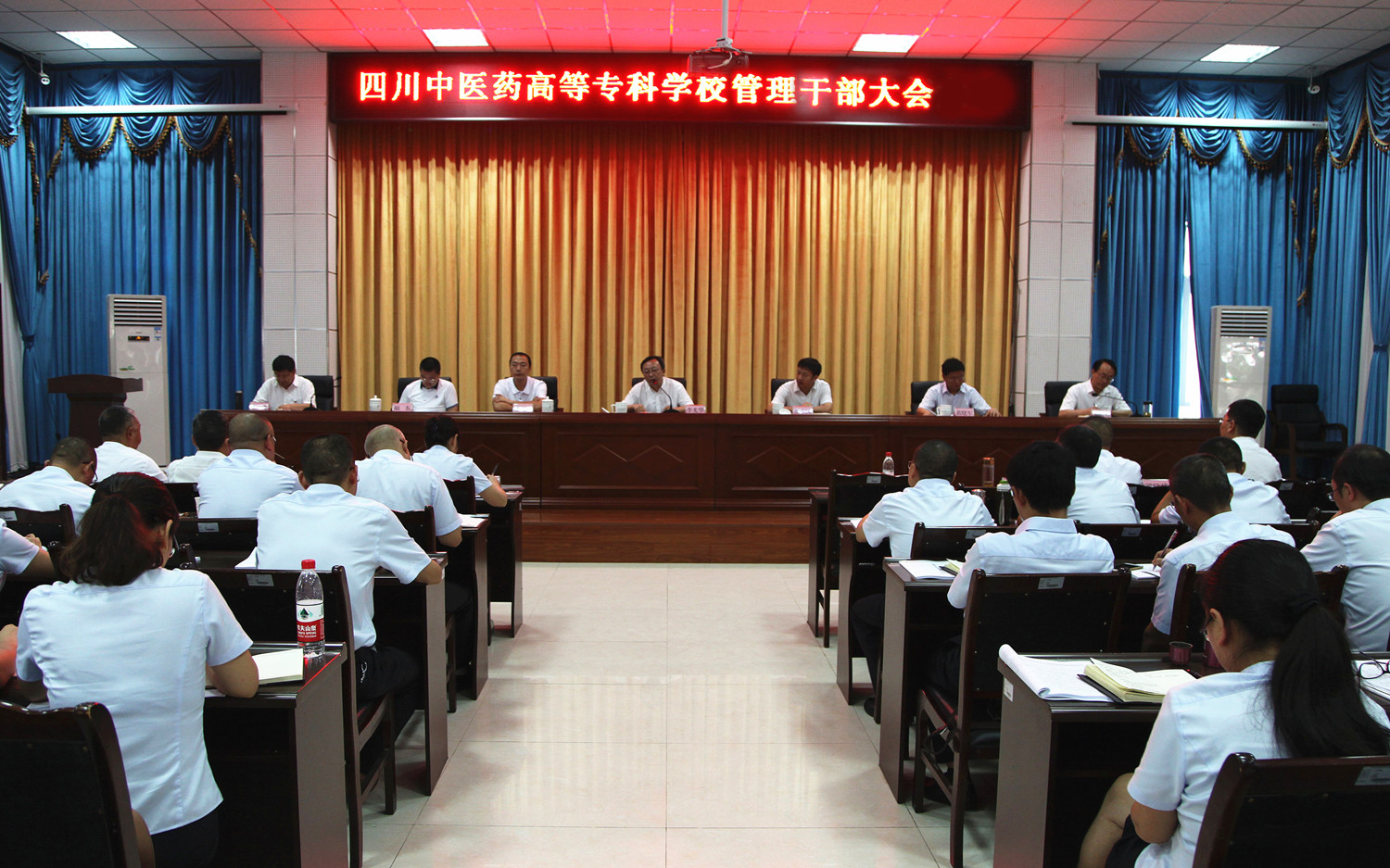 2018年8月30日,我校召开全校管理干部工作会议,省委教育工委宣布关于王飞同志担任我校校长的通知。省委教育工委副书记、省教育厅党组成员李光华,省委教育工委组干处副处长谢良冯,绵阳市委常委、宣传部长张学民,绵阳市委组织部副部长、市人才办主任黄晓军,绵阳市教育和体育局党组书记、局长胡东,我校党委书记秦晓明,我校新任校长王飞出席会议;学校全体校领导班子成员及中层以上干部参会;秦晓明主持会议。