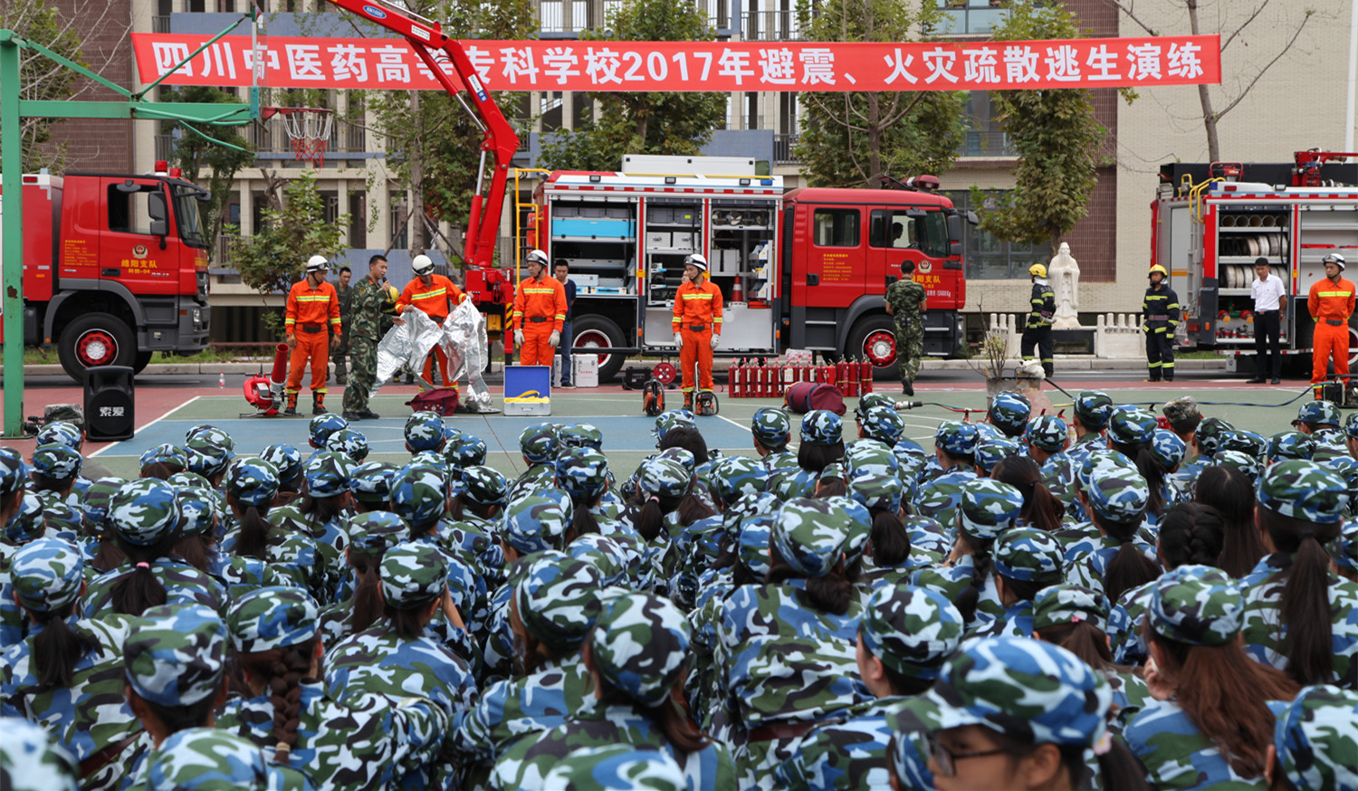 9月18日下午,我校两栋学生宿舍突然冒起“滚滚浓烟”,随着警报响起,学生纷纷用湿毛巾捂住口鼻,迅速、有序地冲出宿舍楼,跑向运动场的开阔地带;消防车迅速赶到现场,消防队员进入大楼开展“救援”……看到这紧张而有序的场面请不要担心,这是我校与科创园区消防中队联合开展的一次大规模避震、火灾疏散逃生应急演练和安全教育活动,3500名2017级大专新生、学校安保人员和教职工参加了本次演练。