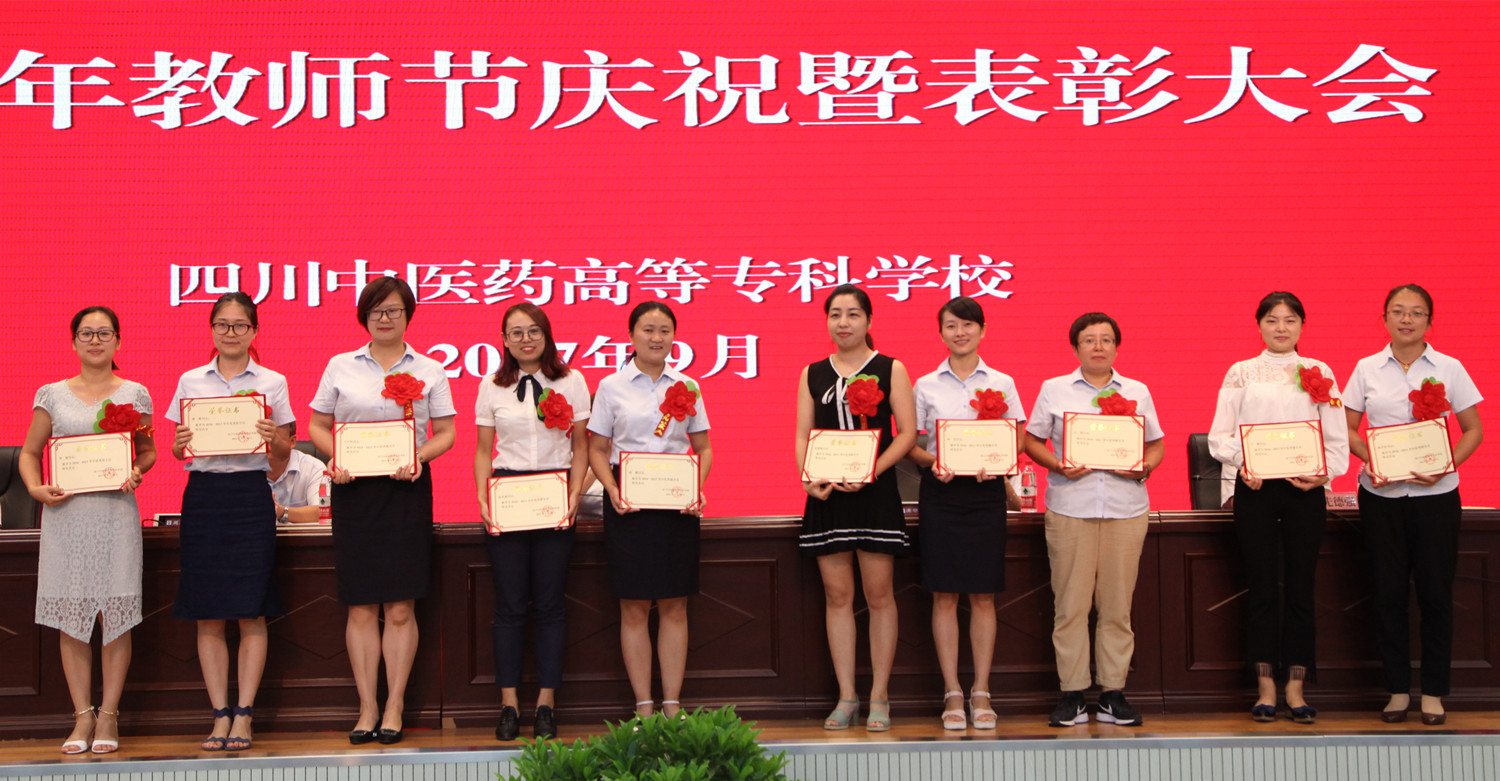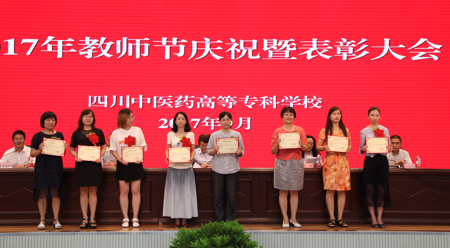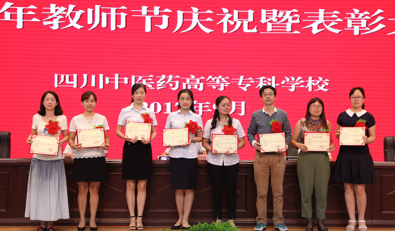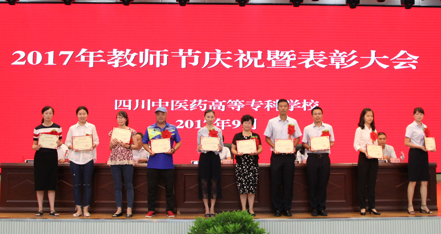 9月8日我校举行第33个教师节庆祝暨表彰大会,表彰了我校获得绵阳市教育工作先进集体、师德标兵、优秀教育工作者、支教工作先进个人;校级优秀教师、学生竞赛优秀指导教师、优秀教学督导员、优秀辅导员和优秀班主任以及全国中医药行业“十三五”规划教材参编教师等160余名教职工。学校党委副书记、纪委书记代红英,副校长金虹、商碧辉、先德强、梁晓峰与全体教职工和各学院的学生代表参加了庆祝暨表彰大会。