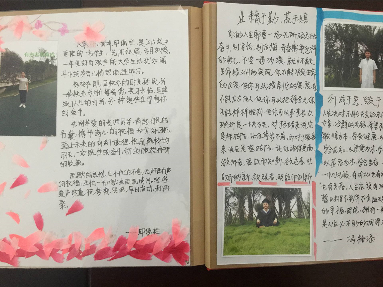 “中医系此次制作的毕业纪念册,以‘那些年,我们一起爱过的医专’为主题,将我们在大学期间的精彩瞬间,比如军训、社会实践、志愿服务、集体活动、文艺演出等都展示出来,并给我们的学弟学妹们‘真情告白’,希望未来的医专人更上一层楼”。中医系的刘平玉说道。