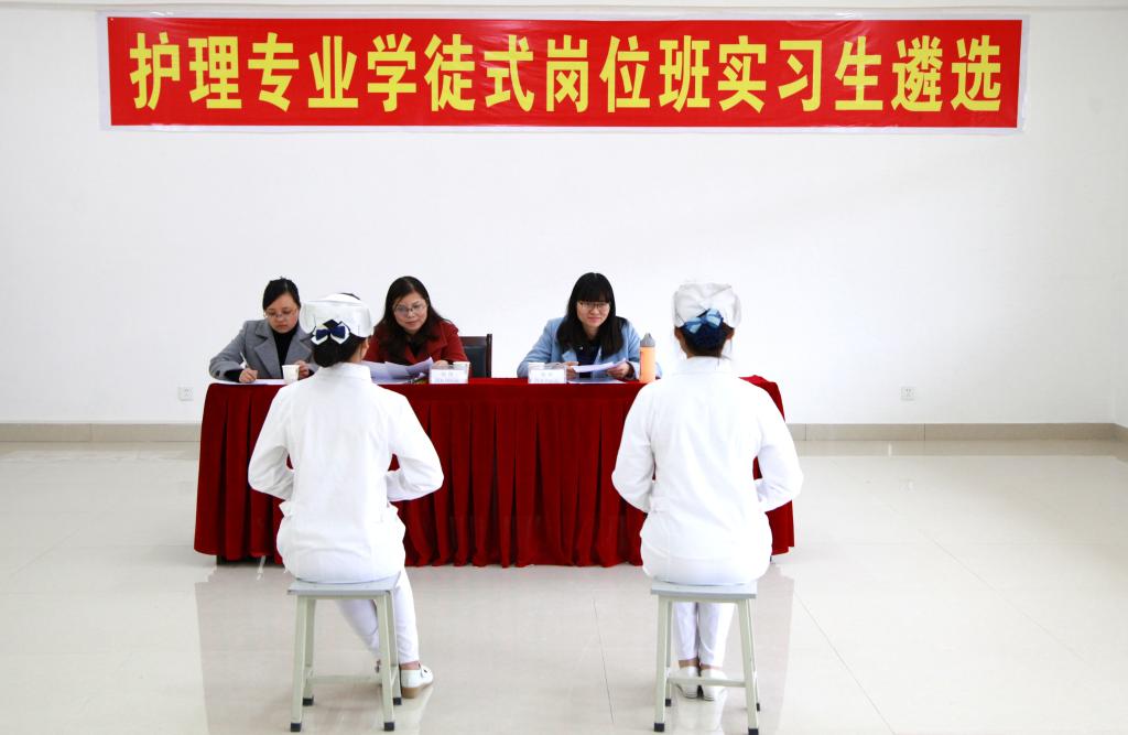 3月11日,我校在全国率先探索开展的护理专业学徒式岗位班开始遴选第二批学员,绵阳市中心医院、绵阳市三医院、绵阳四0四医院和我校附属绵阳市中医医院前来招选;此次共招选学生150名。
