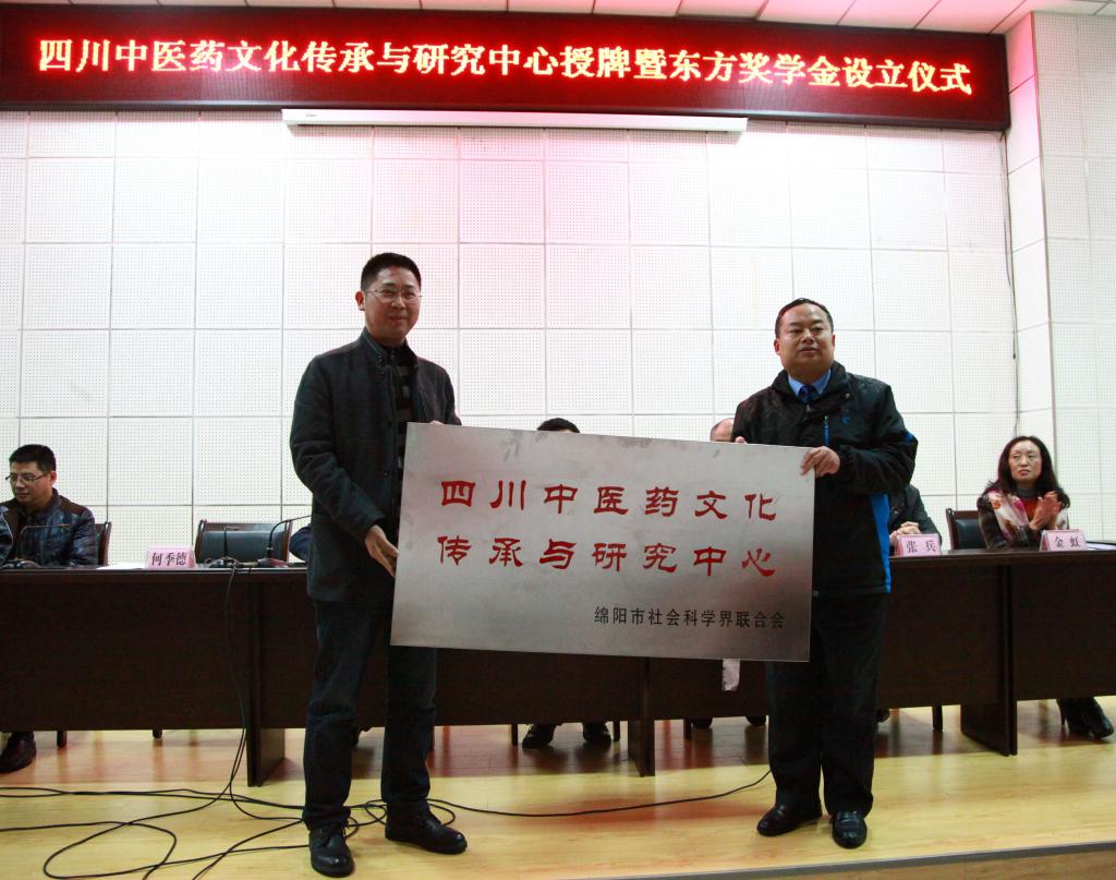 图为:市社科联主席何季德为四川中医药文化传承与研究中心现场授牌 |