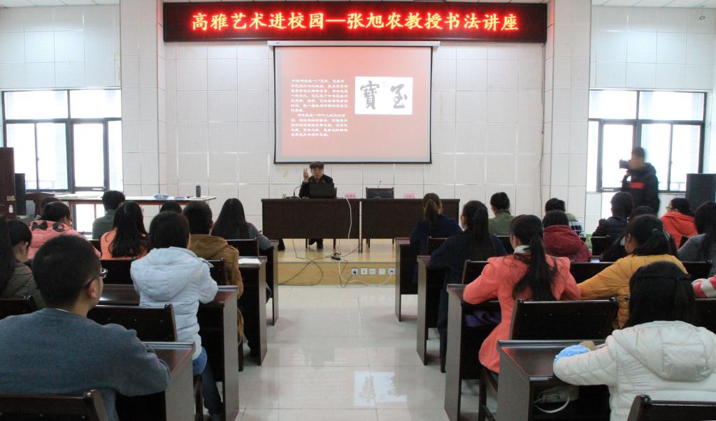 11月26日,成都文理学院张旭农教授应邀到我校作了一场以《书法艺术的人生体验》为题的书法讲座。全校师生共200余人现场聆听。