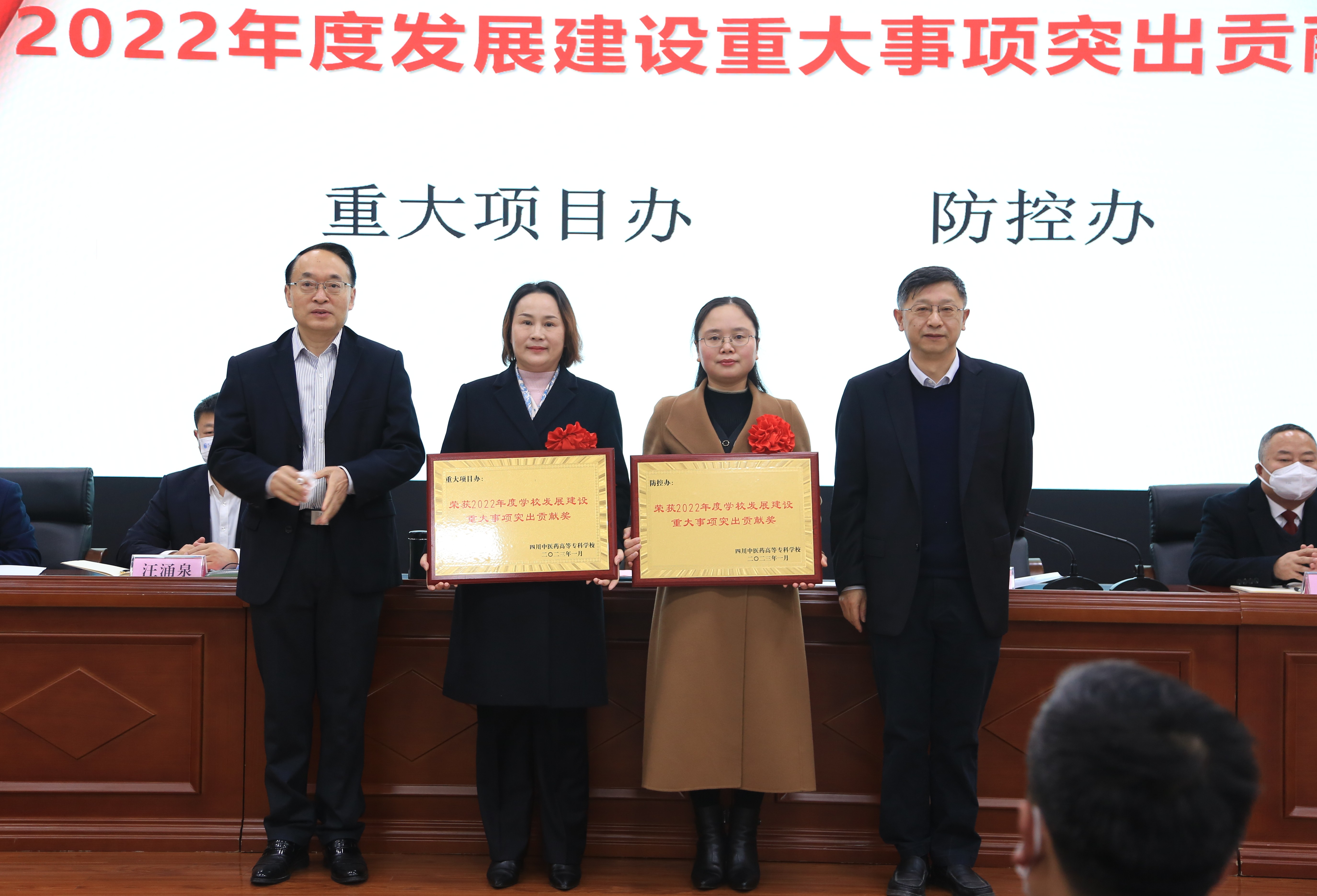 大会对获得学校发展建设重大事项突出贡献奖的重大项目办公室和疫情防控办公室、2022年度工作目标考核优秀的部门和学院、获得“2022年度十大校园新闻事件”的部门和学院、获得国家级省级表彰的部门和学院以及2022年度优质服务先进个人进行了表彰。
