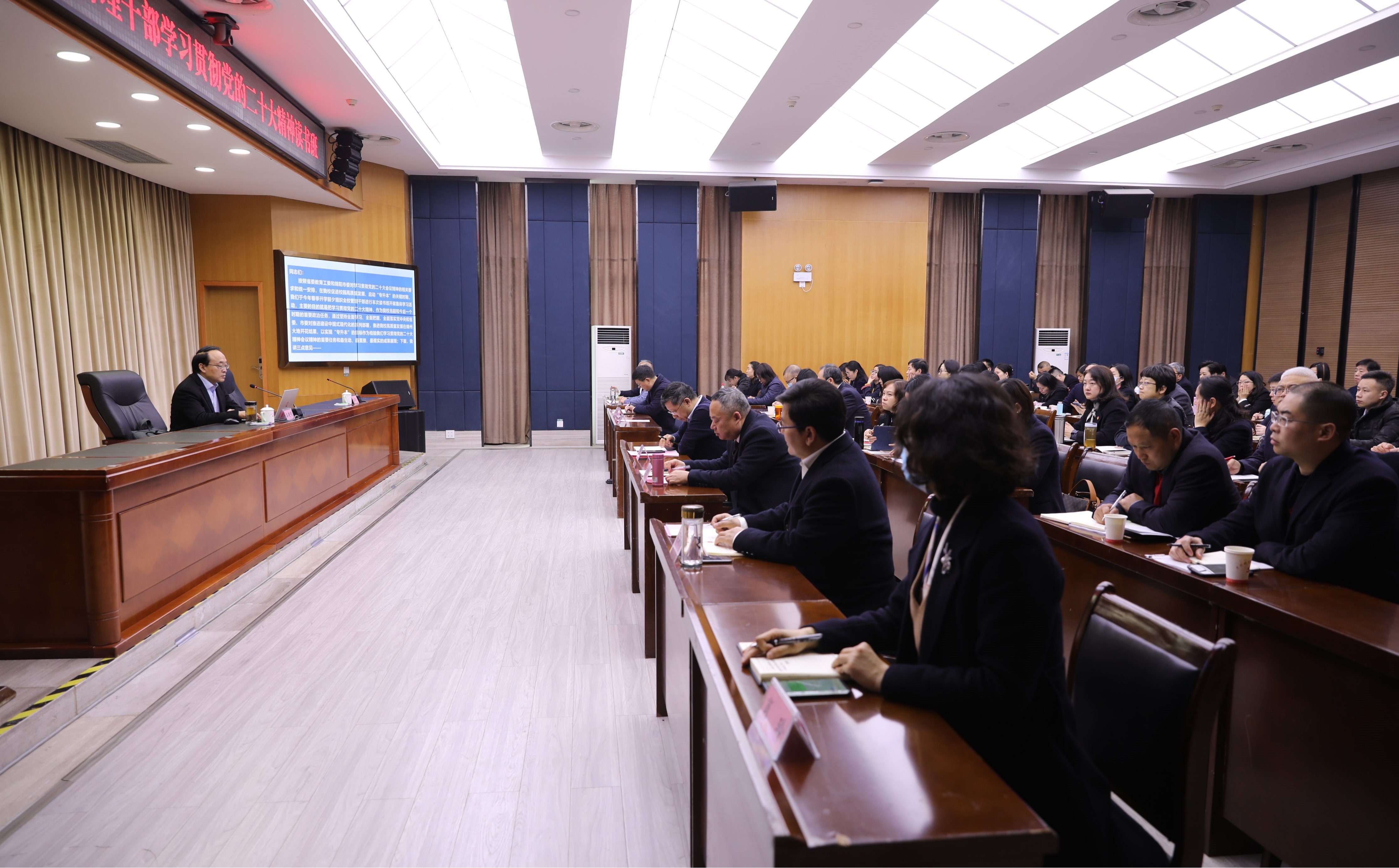 秦晓明以《全面学习贯彻党的二十大精神 在我校发展建设的关键时期更加奋发有为》为主题,从全面学习领会贯彻党的二十大精神、深刻领会和把握现代职业教育建设改革的新要求,以及在服务建设川北省域经济副中心的进程中突出“三个强化”(强化高质量发展的工作推动、服务地方发展的效能和对外交流合作的成果),深刻分析和阐述了现代职业教育建设改革面临的新要求、新形势和新挑战。他要求全体管理干部要把学习宣传贯彻党的二十大精神作为我校当前和今后一个时期的首要政治任务,认真贯彻党中央和省委、市委对推进建设中国式现代化的系列部署,大力发扬光荣传统和优良作风,脚踏实地、真抓实干,切实把信心和力量凝聚到我校高质量发展以及各项建设发展任务上来。