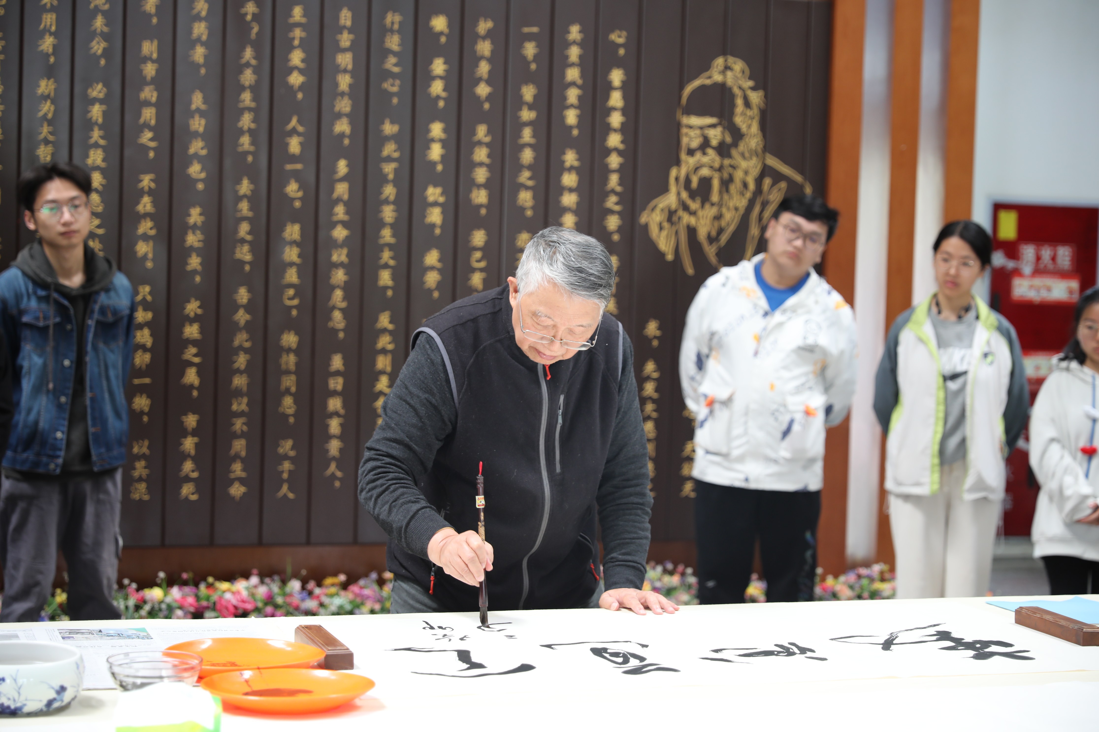 叶怀祥还在我校进行书法交流活动,现场创作书法作品,展现书法艺术风采,我校师生代表共60余人参加。
