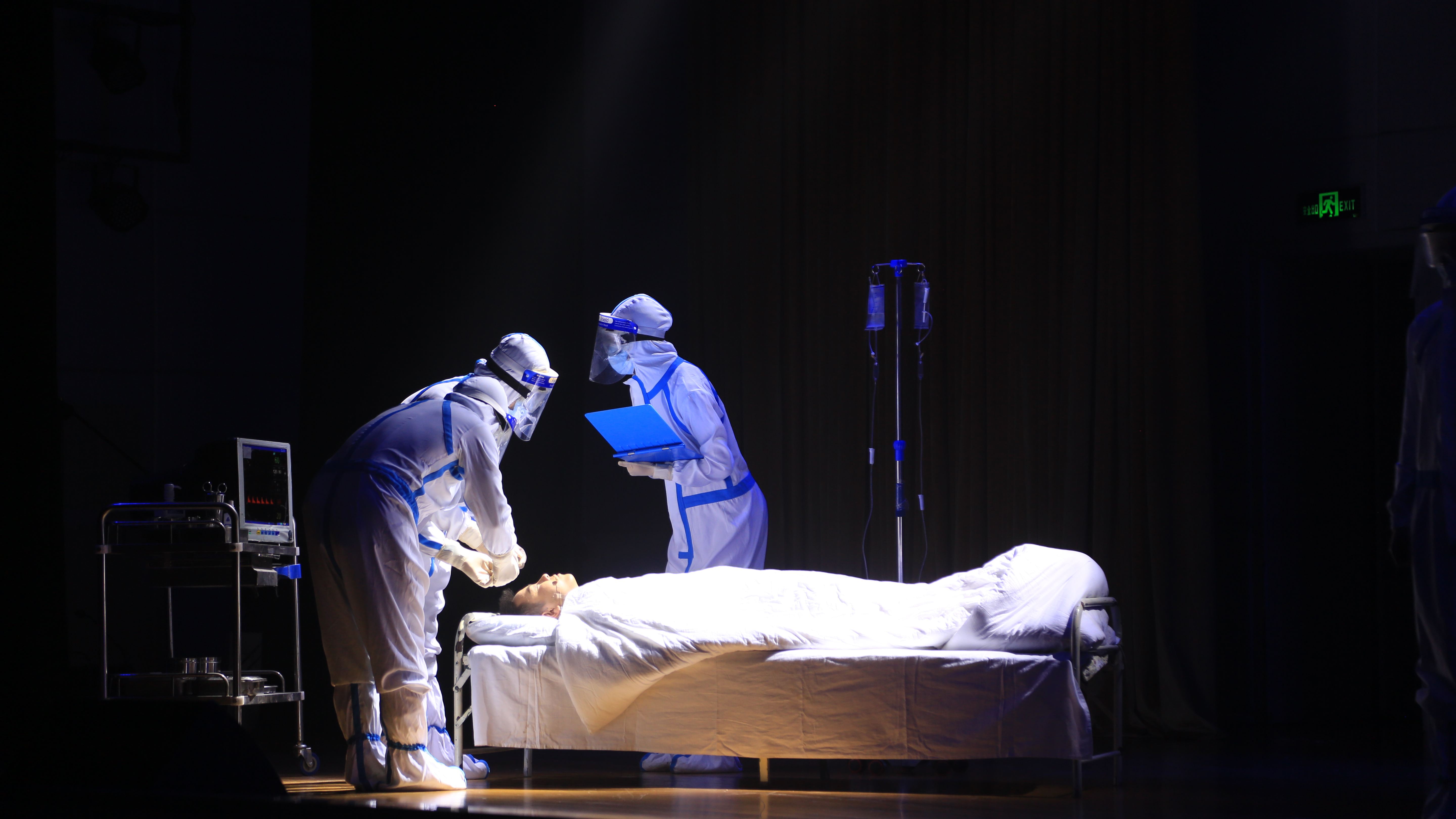 该剧通过一段曲折的婚约,将现实与历史、灾难与生活、爱情与死亡紧紧联系在一起,展现了广大医务工作者在大灾大难面前用生命逆行的无畏与担当,弘扬了医务工作者“敬佑生命,救死扶伤,甘于奉献,大爱无疆”的崇高精神。针灸推拿学院22级中医康复技术1班学生黄俊翔说:“话剧舞台效果非常好,很有渲染力,我情不自禁被带入进话剧当中,仿佛身临其境。”药学院22级中医单招3班学生邱佳豪表示,该剧让他对医务工作者这份职业的使命与担当有了更加深刻的认识。