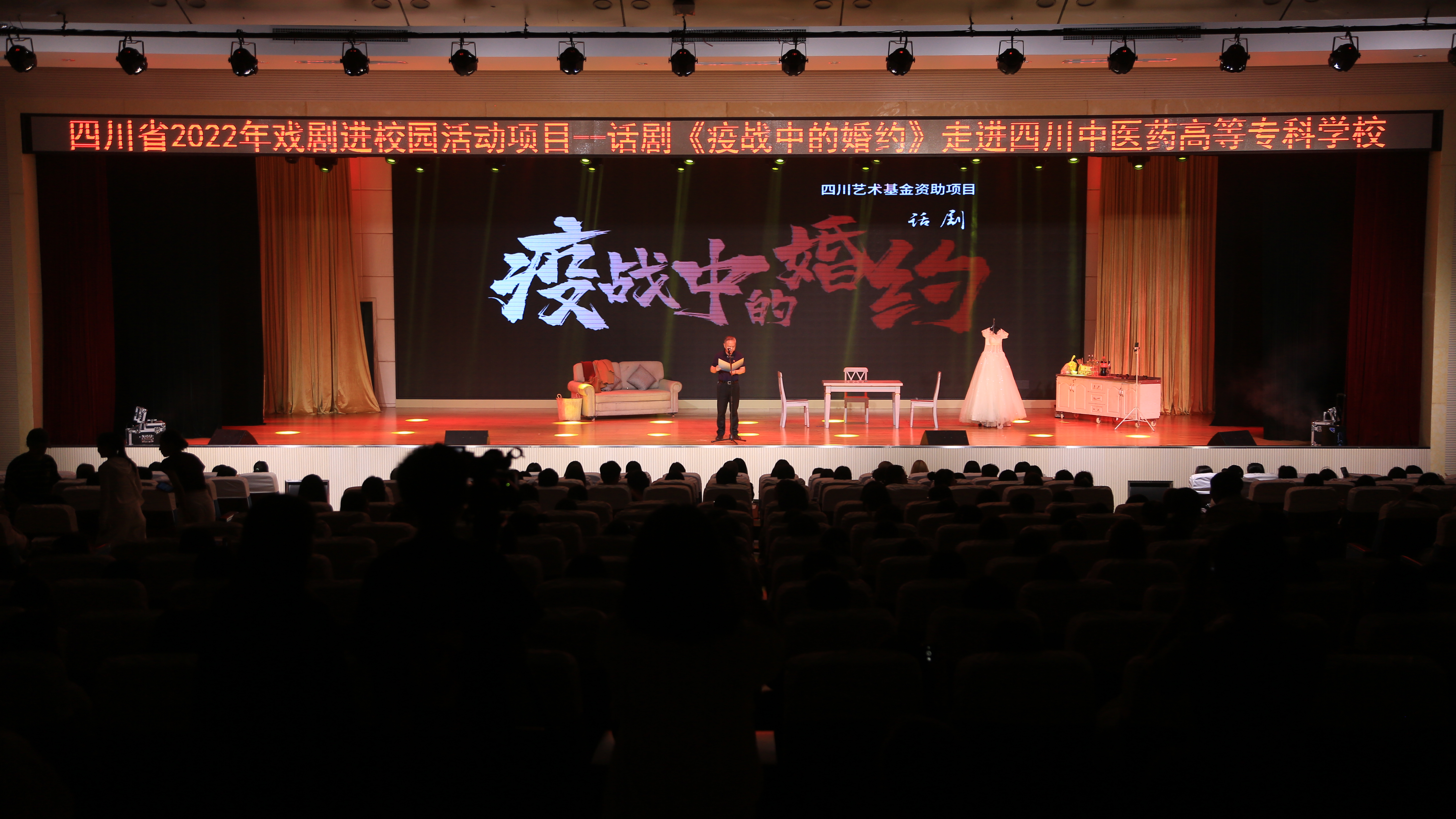 6月16日下午,四川省戏剧进校园活动——话剧《疫战中的婚约》在我校北区礼堂上演,500余名师生观看了演出。