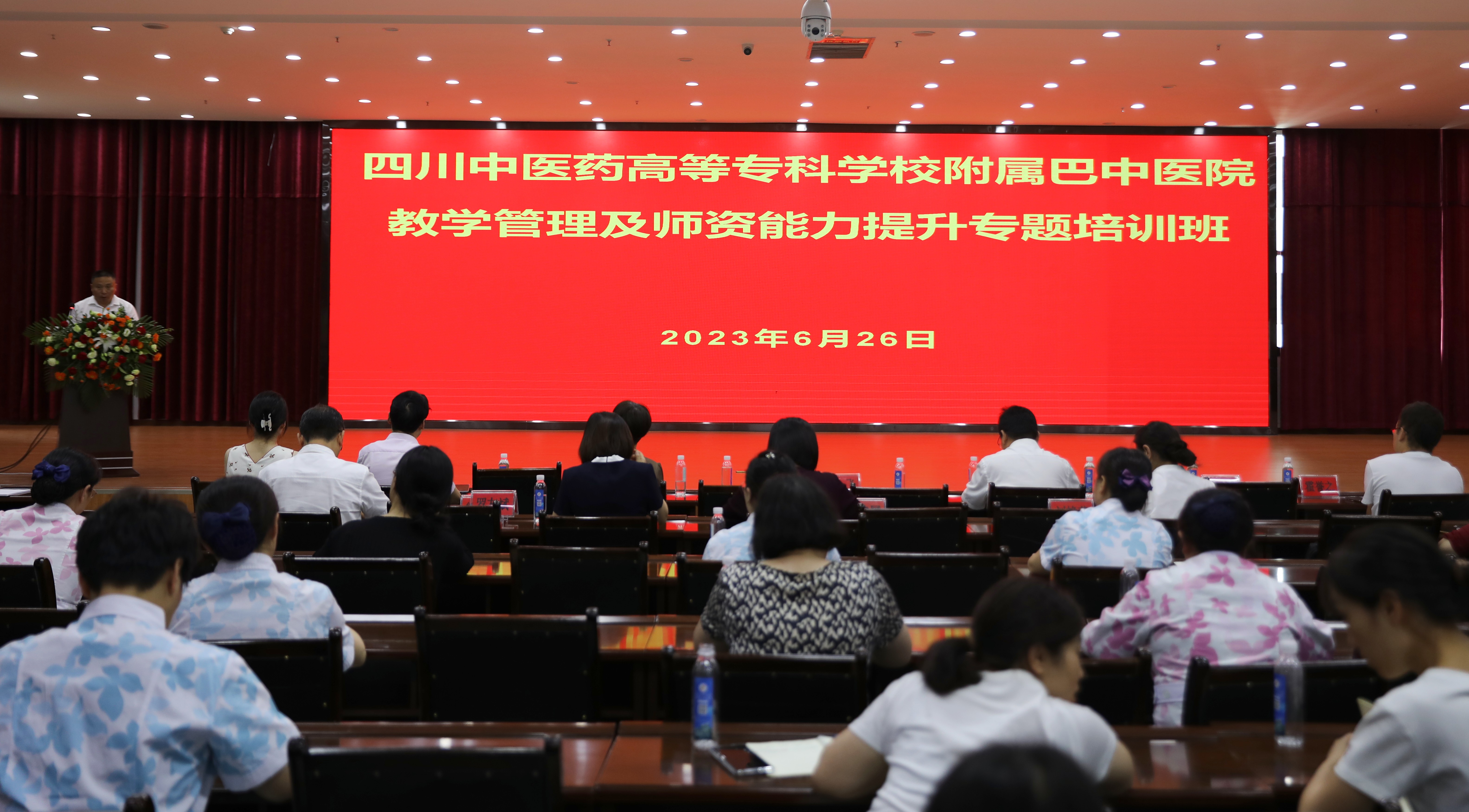 揭牌仪式结束后,举行了教学管理暨师资能力提升专题培训会。王飞在培训会上表示,巴中市中医院是一所历史悠久、实力雄厚、医疗水平高的三级甲等中医医院,双方加强合作,有助于巴中市中医院在临床、教学、科研能力等方面的提升,努力培养一批“下得去,留得住,干得好”的医药卫生人才,助力革命老区的整体建设和发展。我校校教务处处长、教授曹艳霞,中医学院副院长杨清,教学督导负责人刘兴华分别以《附属医院在医药卫生人才培养中的重要作用》《中医妇科特色治疗》《如何上好一堂理论课》为题向参训人员讲解授课。