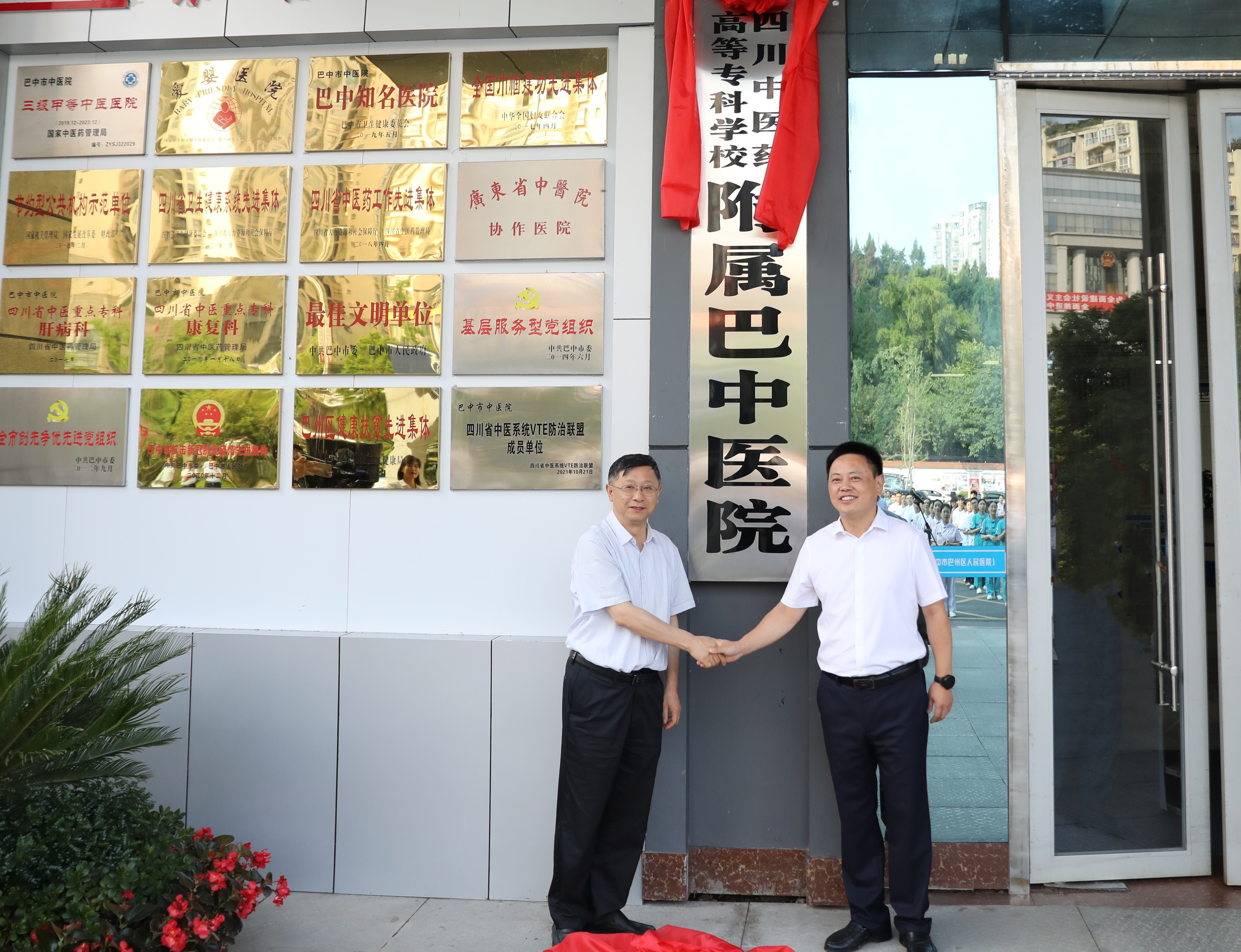 王飞、余斌为附属医院揭牌。罗福荣在致辞中表示,巴中市中医院(巴中市巴州区人民医院)成为四川中医药高等专科学校非直属医院,充分体现了学校对革命老区的关心和支持,医院必须把这项工作抓落实、抓落地、抓出实效,以此为起点,实现资源整合,深入践行教学相长,共同书写医学教育事业高质量发展新篇章。