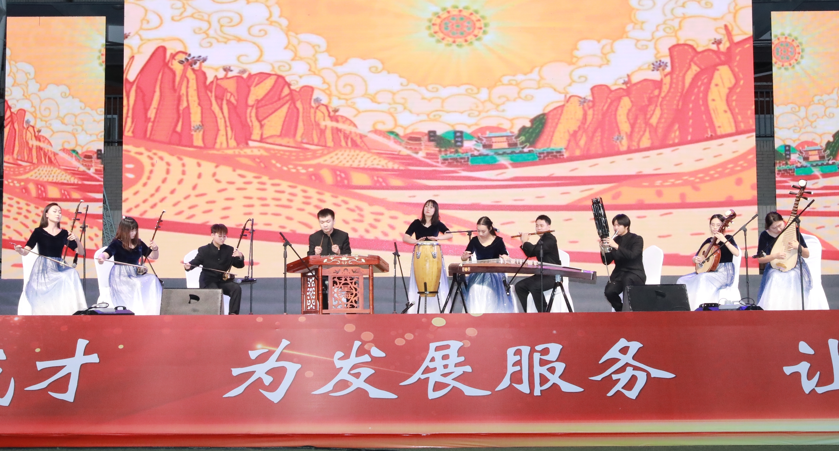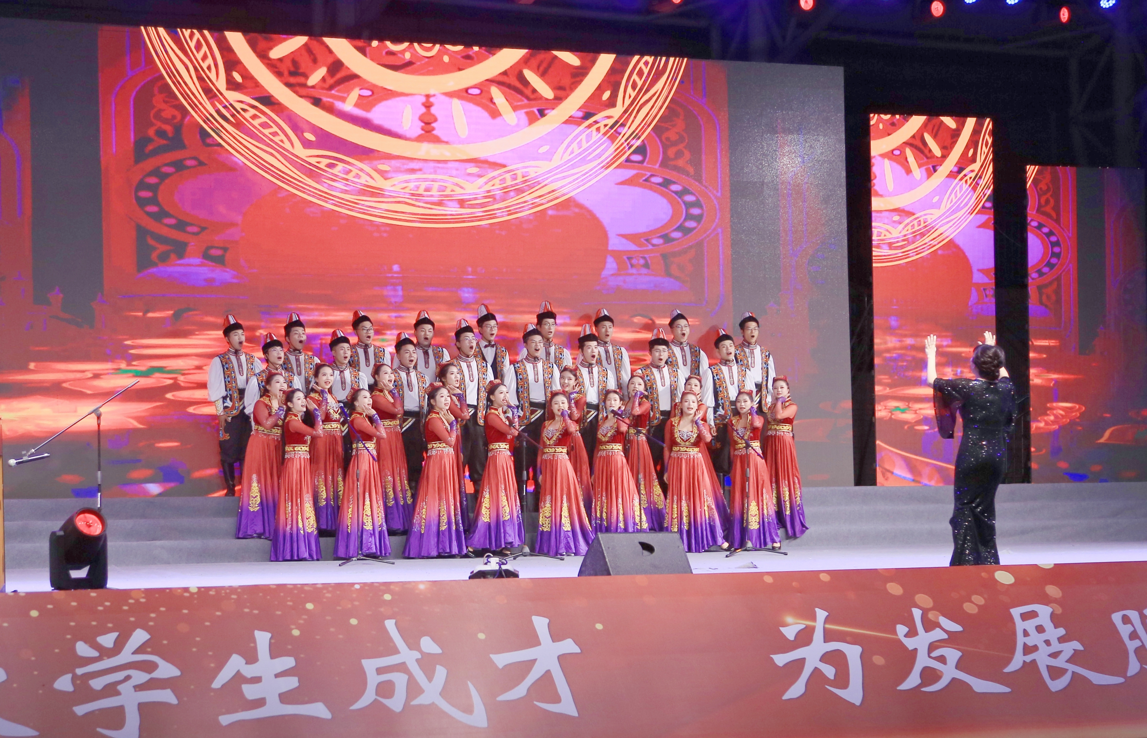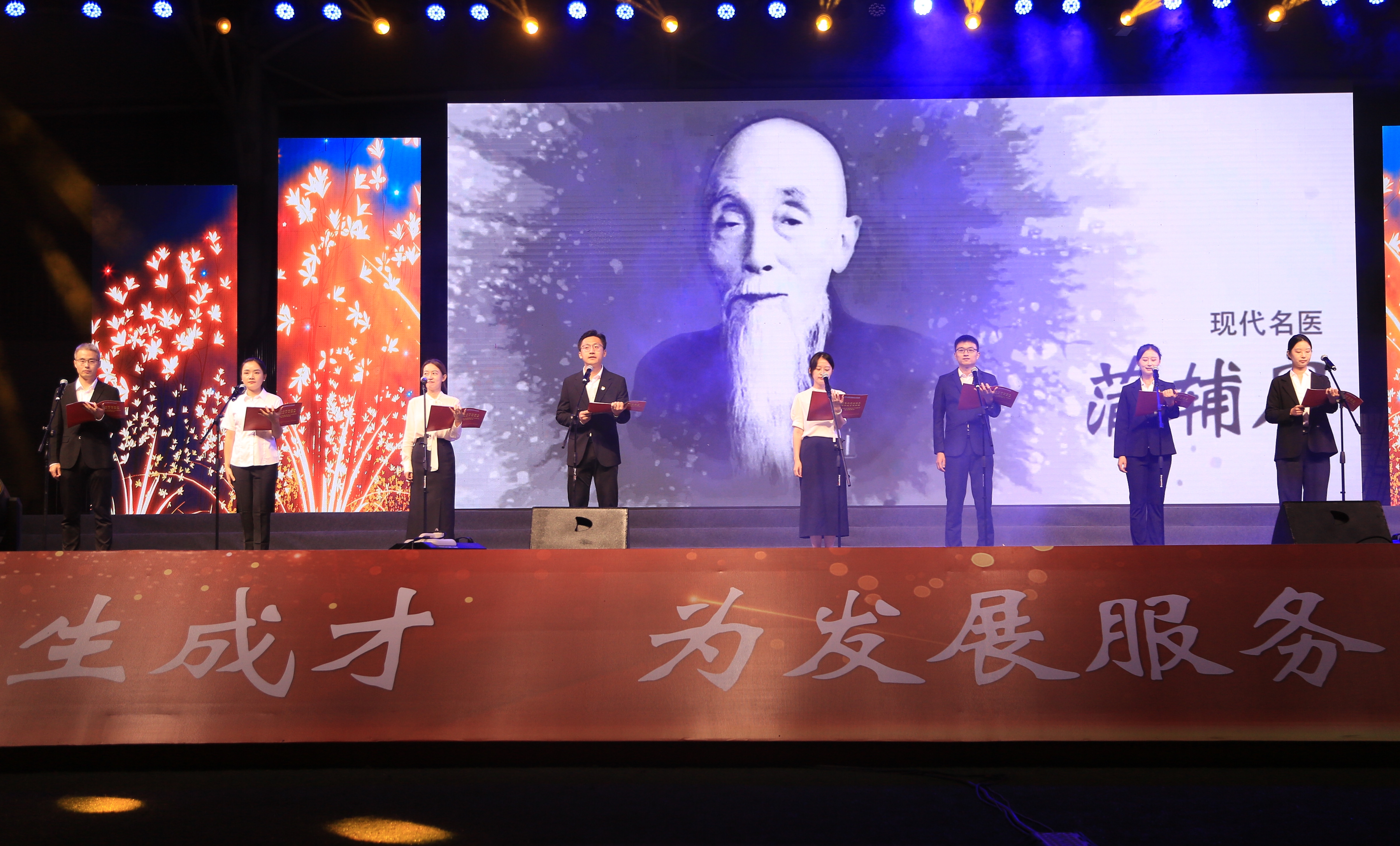 本场晚会集器乐、歌曲、舞蹈、朗诵等多种表演于一体,形式多样、精彩纷呈。由四川文化艺术学院带来的开场器乐《敦煌》让师生们感受古老中华文化的韵味;护理学院和中医学院带来的舞蹈《国家》激荡人心;工行绵阳分行带来的独唱《星辰大海》赞颂中国航天人踔厉奋发、笃行不怠、逐梦九天;医疗技术学院、针灸推拿学院、临床医学院和护理学院带来的歌曲串烧以独特的民族语言和耳熟能详的歌曲缓缓倾诉着对祖国的热爱;新进教师代表的朗诵《奋进医专人 同心创未来》声情并茂,展现了全校师生同心协力共创新辉煌的信心和决心……当《杏林飞歌》的音乐响起,掀起了整场晚会的高潮,师生们怀着激昂澎湃的心情,唱响了四川中医专人共同的歌。