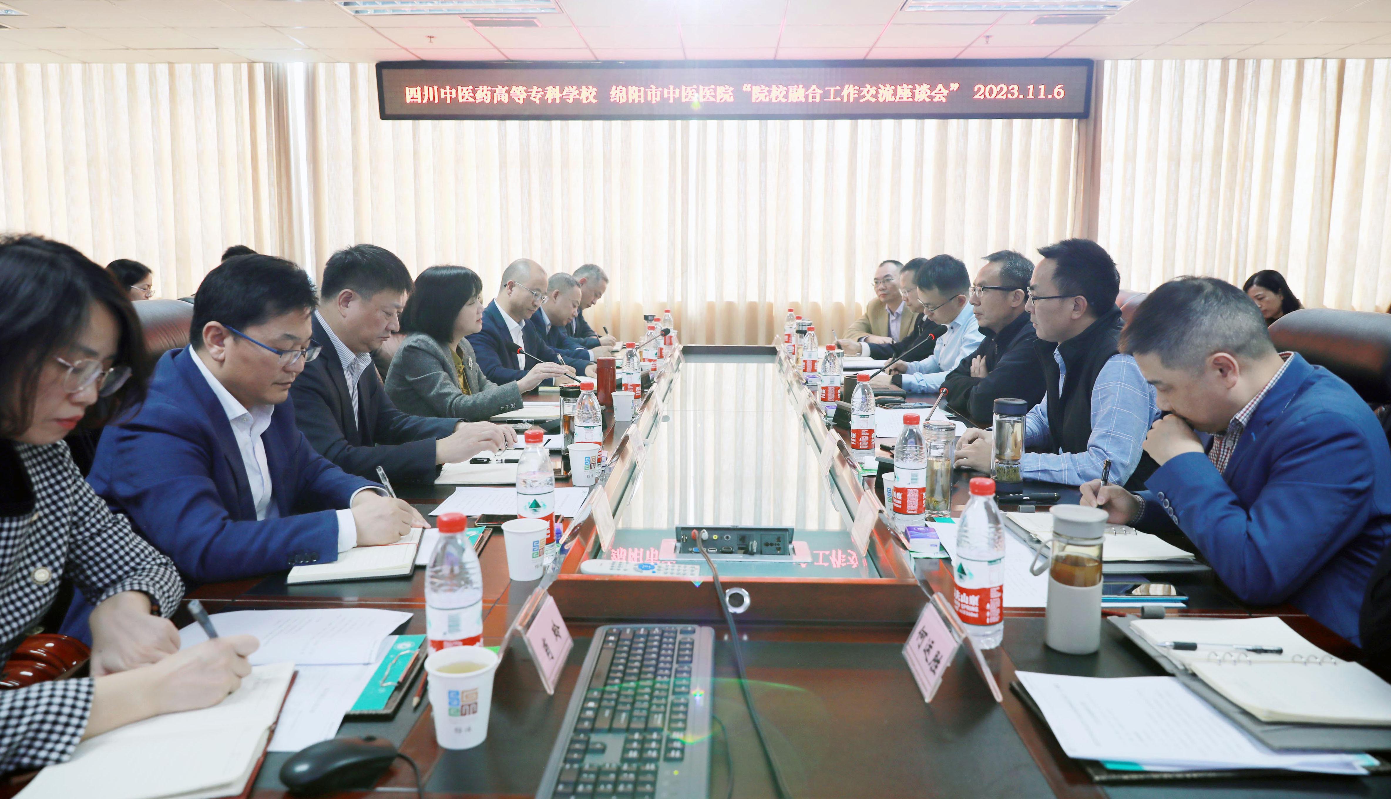 11月6日,校党委书记李炜弘、校长李祥带领全体班子成员到绵阳市中医医院进行校院融合工作交流,绵阳市中医医院院长张明及相关负责人参加。