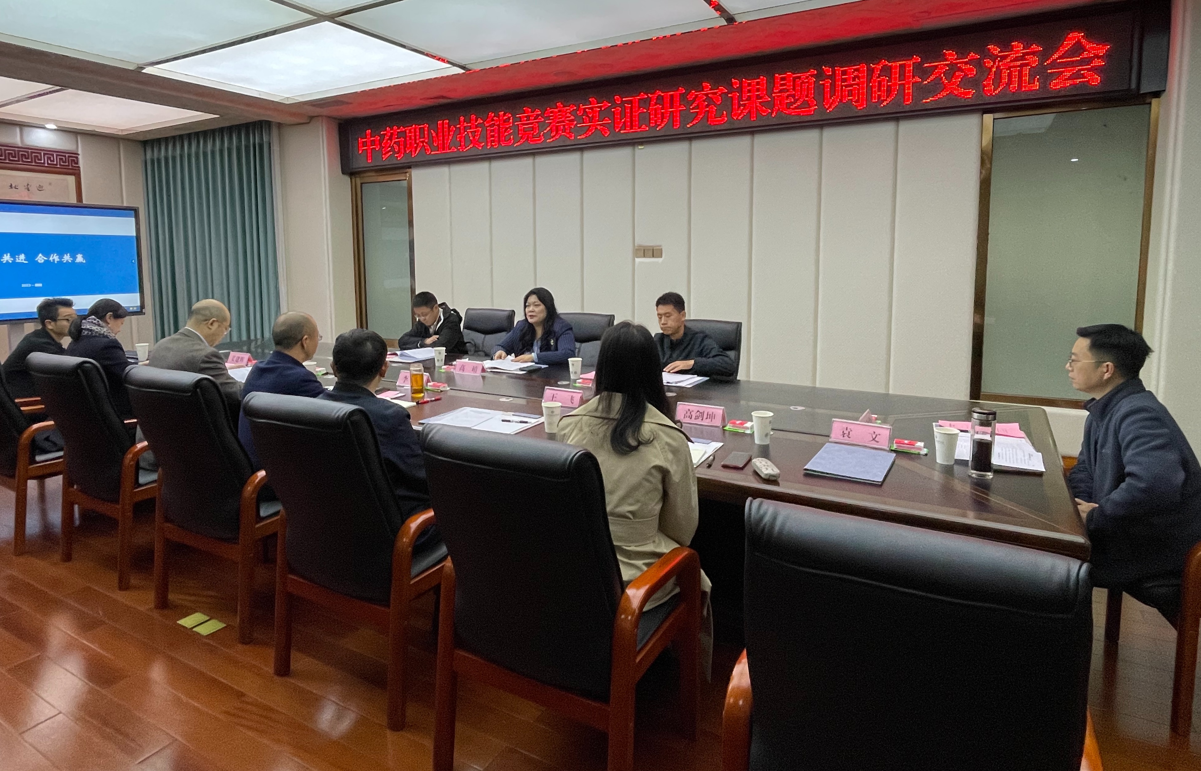 高靖介绍了全国卫生健康系统职业技能竞赛中药调剂职业技能竞赛实施方案;药学院教师对中药职业技能竞赛实证研究课题的进展情况进行了汇报;李祥结合我校实际情况和当前中药职业技能竞赛实证研究课题的进展作了总结。此次调研交流进一步拓展了课题研究内容,课题成果将为通过技能竞赛程度展现中医药工作者勤奋学习、精通业务、爱岗敬业、积极向上的精神风貌和良好社会形象提供前瞻性的理论依据。