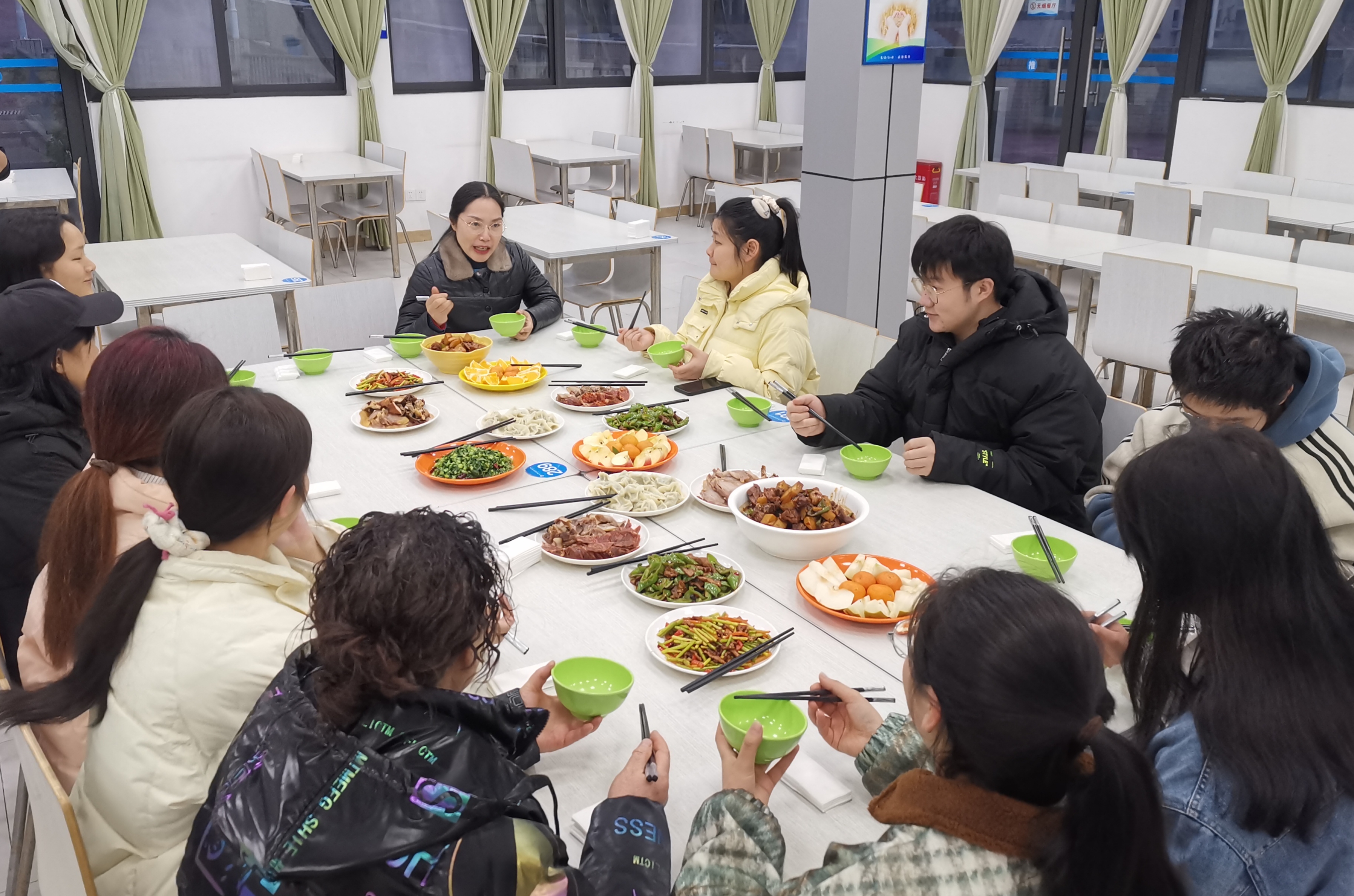 南校区食堂还为春节期间因在绵实习而留校的10位同学准备了丰盛的年夜饭,同学们吃着热气腾腾的水饺、腊肉香肠,表示感谢学校的关心关爱,春节期间一定认真做好实习值班,在实习中练就真本领,不负学校的殷殷期望。