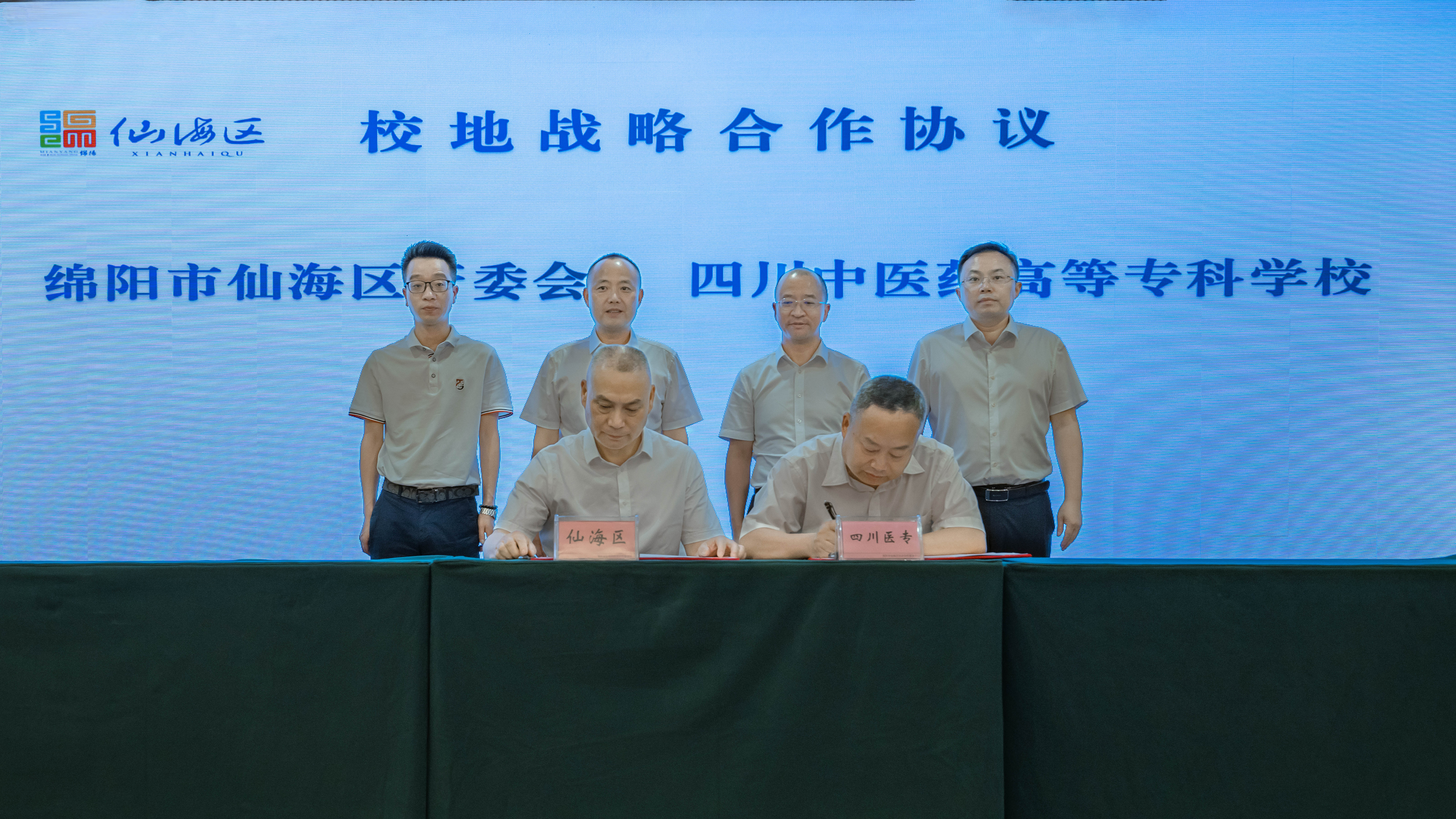 5月27日,我校与绵阳市仙海区签订战略合作协议。校长李祥,副校长商碧辉及医疗健康产业处负责人等参加了签约仪式。