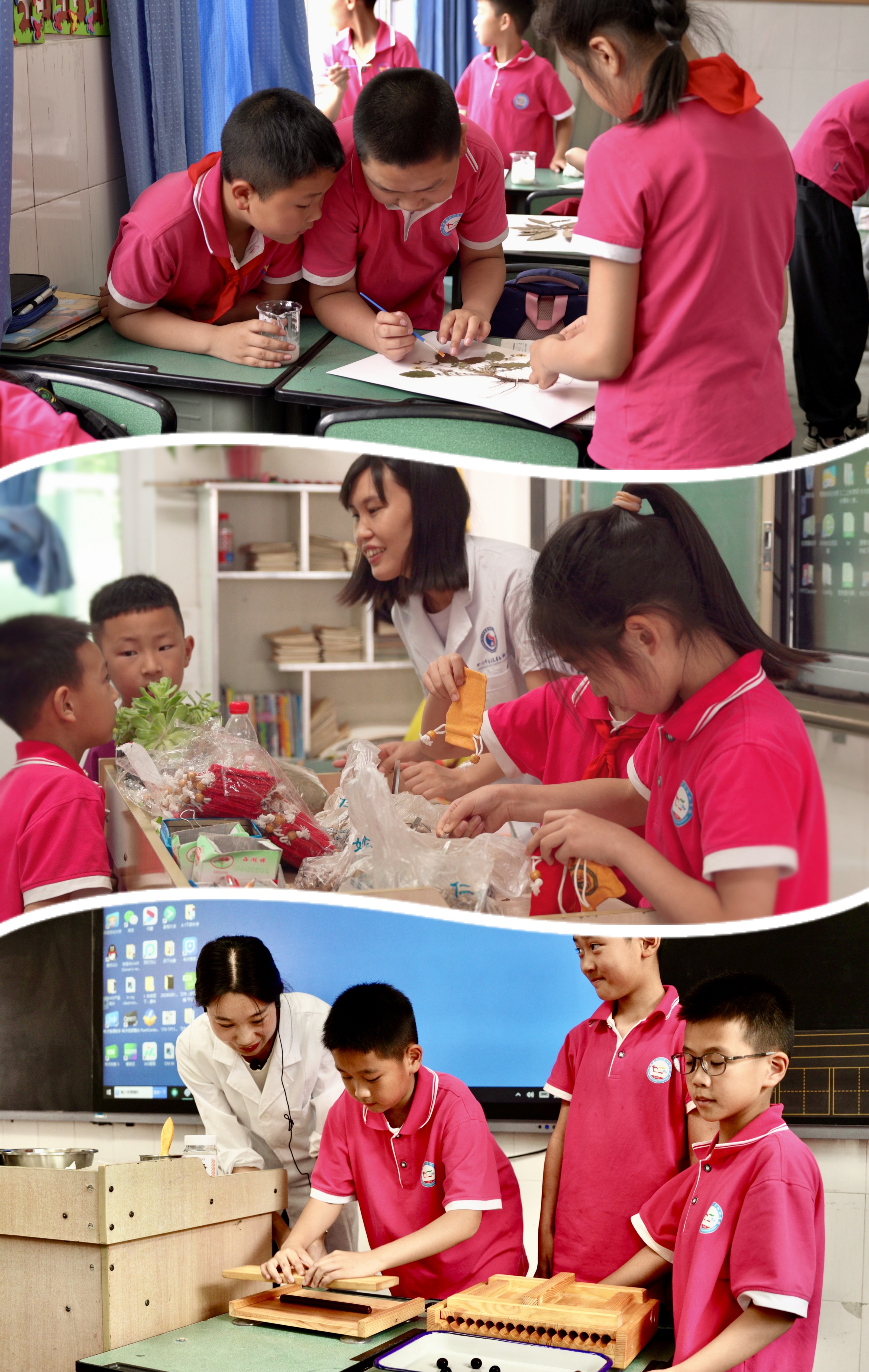 二年级学生彭靖植展示了亲手制作的中草药香囊:“中医药太神奇了,广藿香可以提神醒脑,艾叶可以驱蚊防疫,我做了漂亮的香囊,带回家送给我妈妈。”