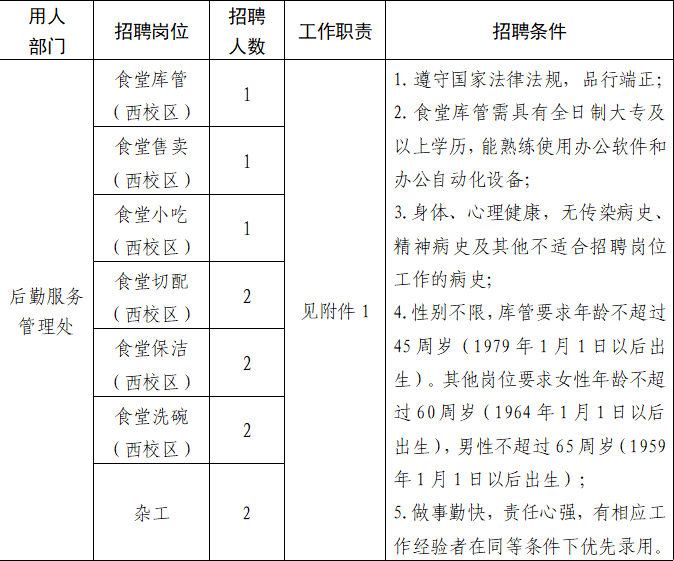 因工作需要,拟面向社会公开招聘后勤工作人员数名,现将相关事项公告如下: