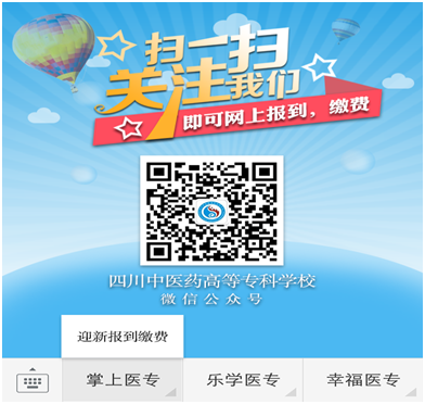 1) 手机端访问方式,微信扫码关注,选择迎新报到缴费: