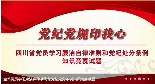 按照省纪委、省委组织部、省委宣传部关于《全省党员学习<中国共产党廉洁自律准则>和<中国共产党纪律处分条例>知识竞赛活动的通知》(川纪综〔2015〕312号)安排,省知识竞赛组委会近日下发了报纸竞赛活动的有关要求,现结合我校实际,就有关事项通知如下。