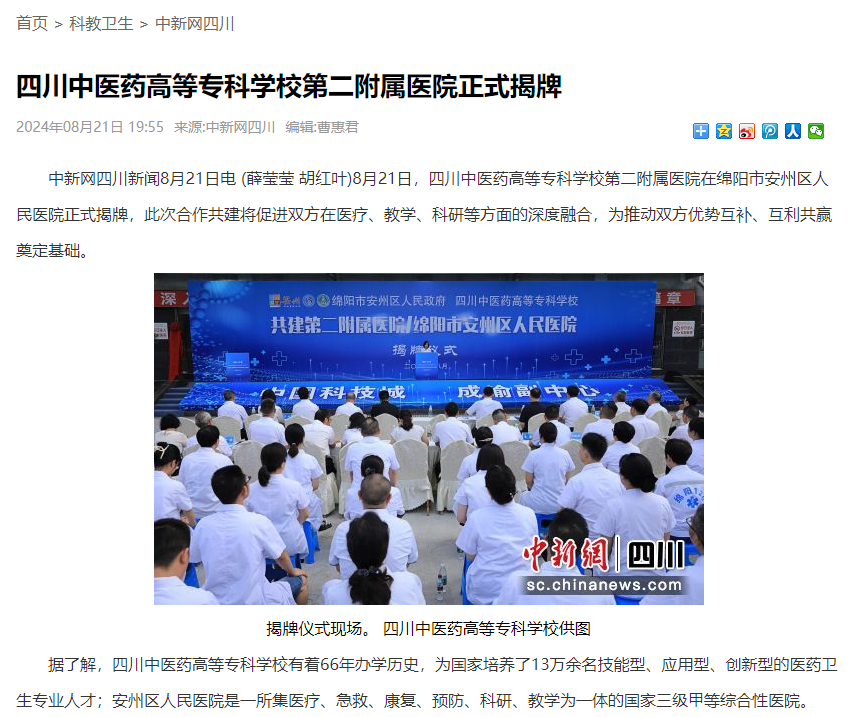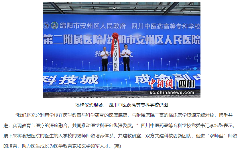 下一篇: 四川日报▪川观新闻:四川中医药高等专科学校第二附属医院在绵阳安州揭牌