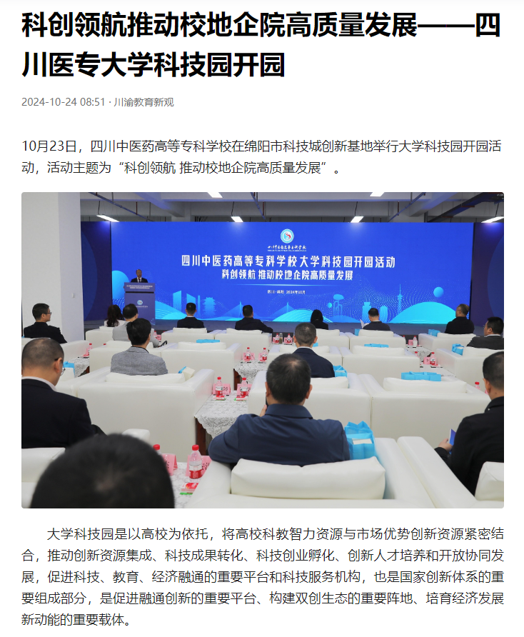 上一篇: 四川先锋网:科创领航推动校地企院高质量发展——四川医专大学科技园开园