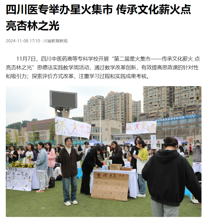 下一篇: 四川先锋网:四川中医药高等专科学校:举办星火集市 传承文化薪火点亮杏林之光