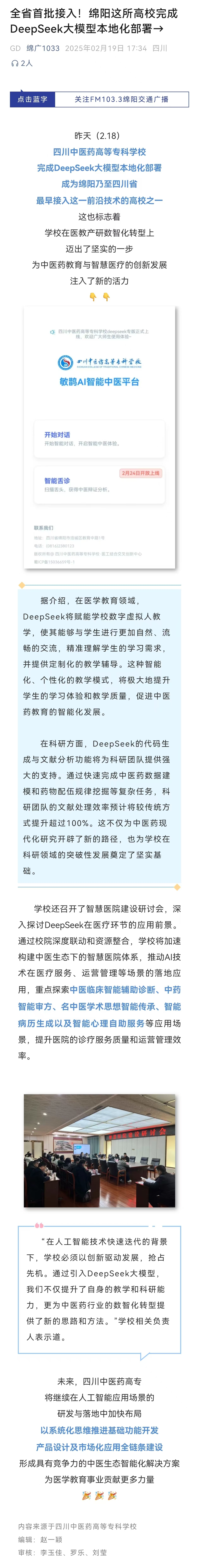 上一篇: 川观新闻:绵阳这所高校完成DeepSeek本地化部署 人工智能这样参与教学科研