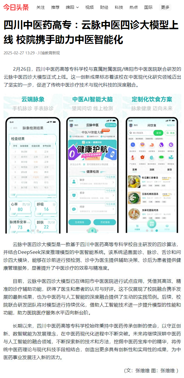 下一篇: 现代职教网:四川中医药高专:云脉中医四诊大模型上线 校院携手助力中医智能化