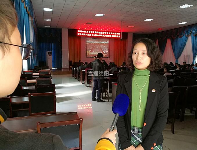 “习近平同志专门提到文化自信,它是一个国家发展最基本最深沉的力量,加强共产主义远大理想,也是中国特色社会主义的理想教育。我们学校应该加强对青年思想的引导,积极地培育和践行社会主义核心价值观。我们的党有很强的政治定力和政治担当,我们相信在党的领导下,我们的社会发展一定能够迈开新步伐,踏上新征程,谱写新华章。”听着习近平同志在会上的讲话,四川医专党办主任肖玲感到振奋之余更对未来充满了自信。(绵阳市广播电视台记者:唐云峰 鲁文林)