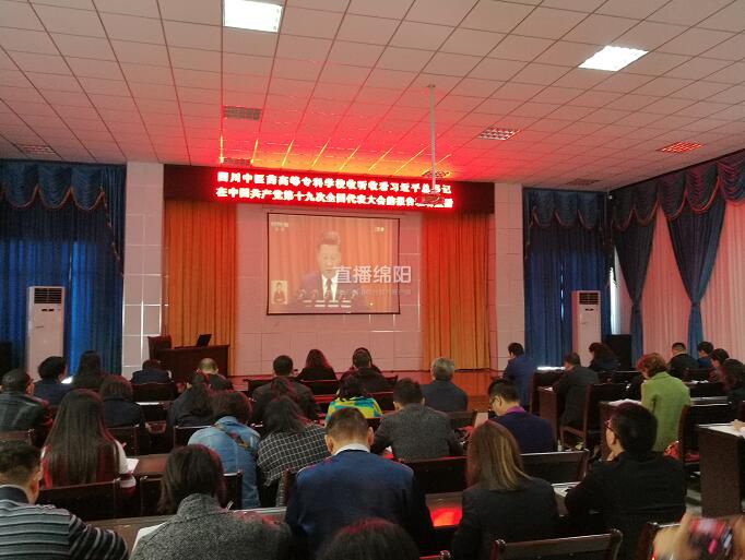 在四川中医药高等专科学校,学校部分师生集中收听收看十九大开幕。