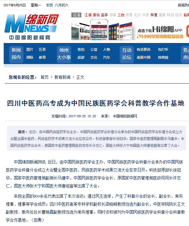 来自全国的600余名代表出席了本次活动;通过民主选举,产生了科普分会的会长、副会长、常务理事、理事等学会成员;四川中医药高等专科学校副校长梁晓峰教授当选为副会长,中医学院院长王文副教授、教务处处长曹艳霞副教授当选为常务理事。同时该校被列为中国民族医药学会科普分会科普教学合作基地。(田勇)