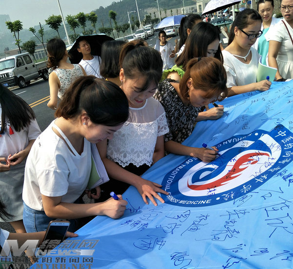 中国绵阳新闻网讯(李洵 莹莹)今年毕业季,四川中医药高专开展了以“感恩母校培育 立志岗位成才”为主题的“五个一”毕业生主题思想教育活动,活动内容为:“我为母校植一树”、“我请名师赠一语”、“我在校园留一影”、“我为校友献一言”、“我离校园树一志”,此活动覆盖了在校8000余名学生。