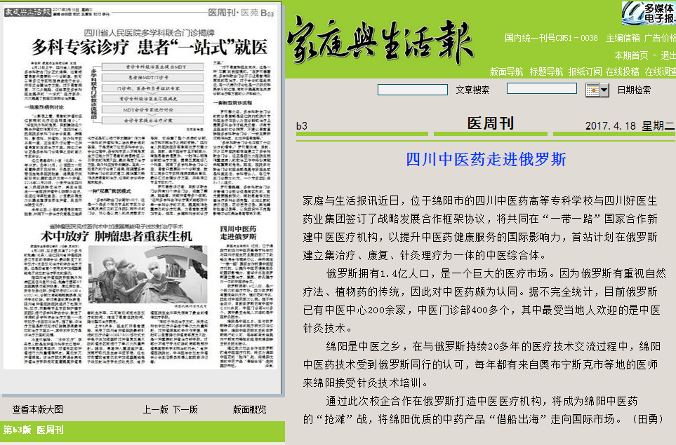 上一篇: 搜狐新闻网:四川中医药走进俄罗斯