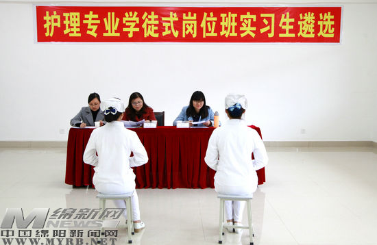中国绵阳新闻网讯(田勇)3月11日,四川中医药高等专科学校在全国率先探索开展的护理专业学徒式岗位班开始遴选第二批学员,绵阳市中心医院、绵阳市三医院、绵阳四0四医院、绵阳市中医医院等市内教学或附属医院纷纷前来招选;此次共招选学生150名。